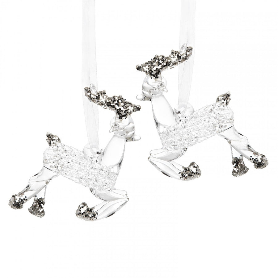 SIKORA BS388 Glas Christbaumschmuck GLITZER HIRSCHE 2er Set