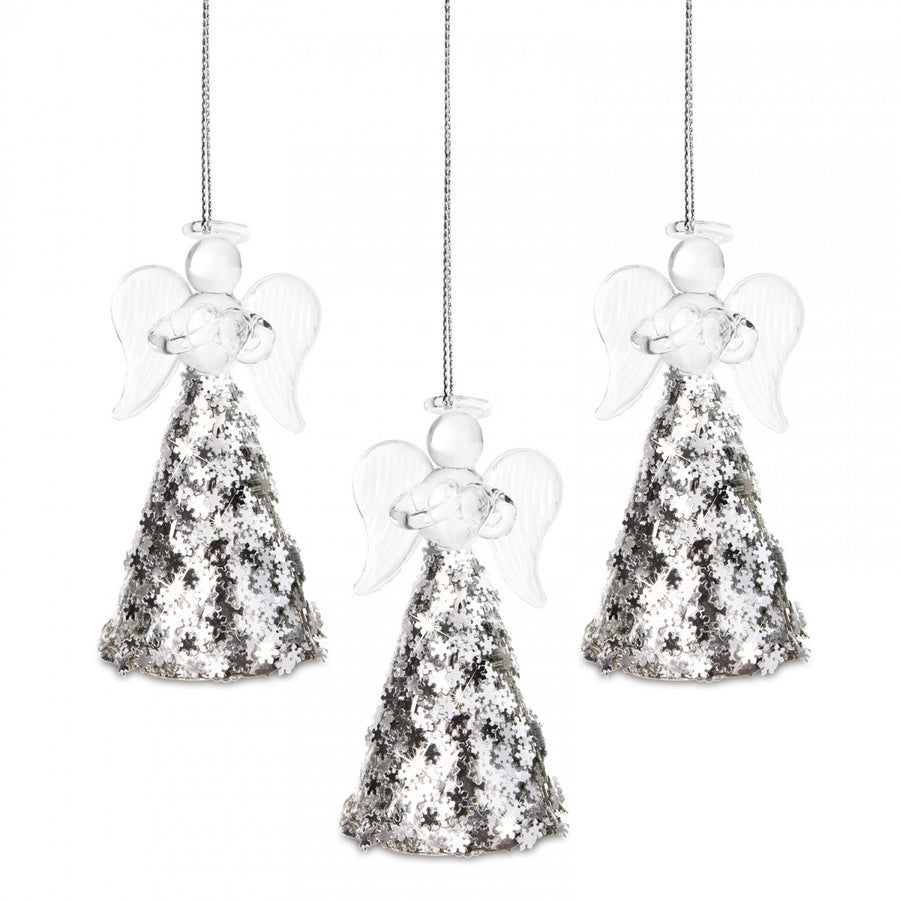 SIKORA Christbaumschmuck aus Glas / ENGEL MIT SILBERROCK / 3er Set - H: 8cm