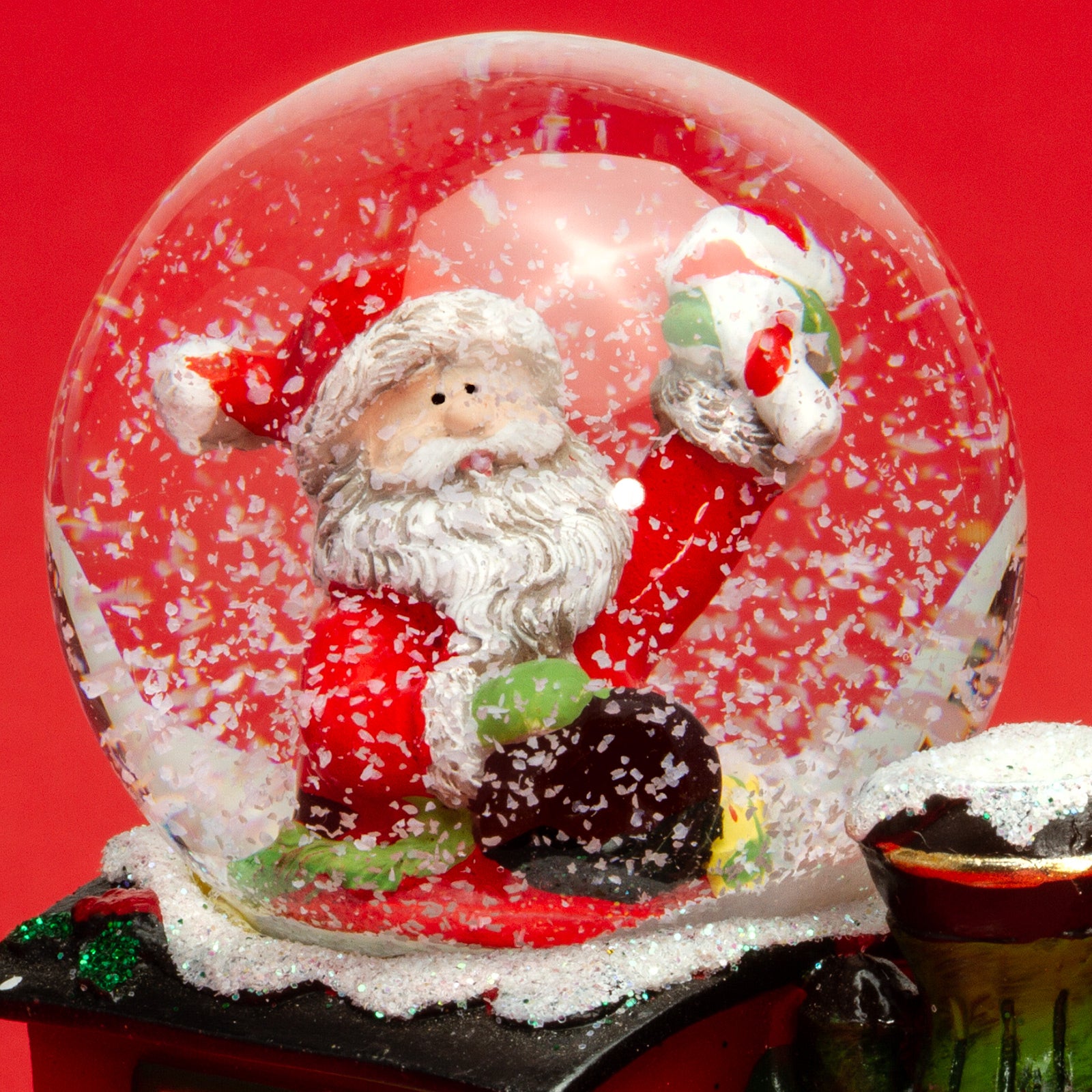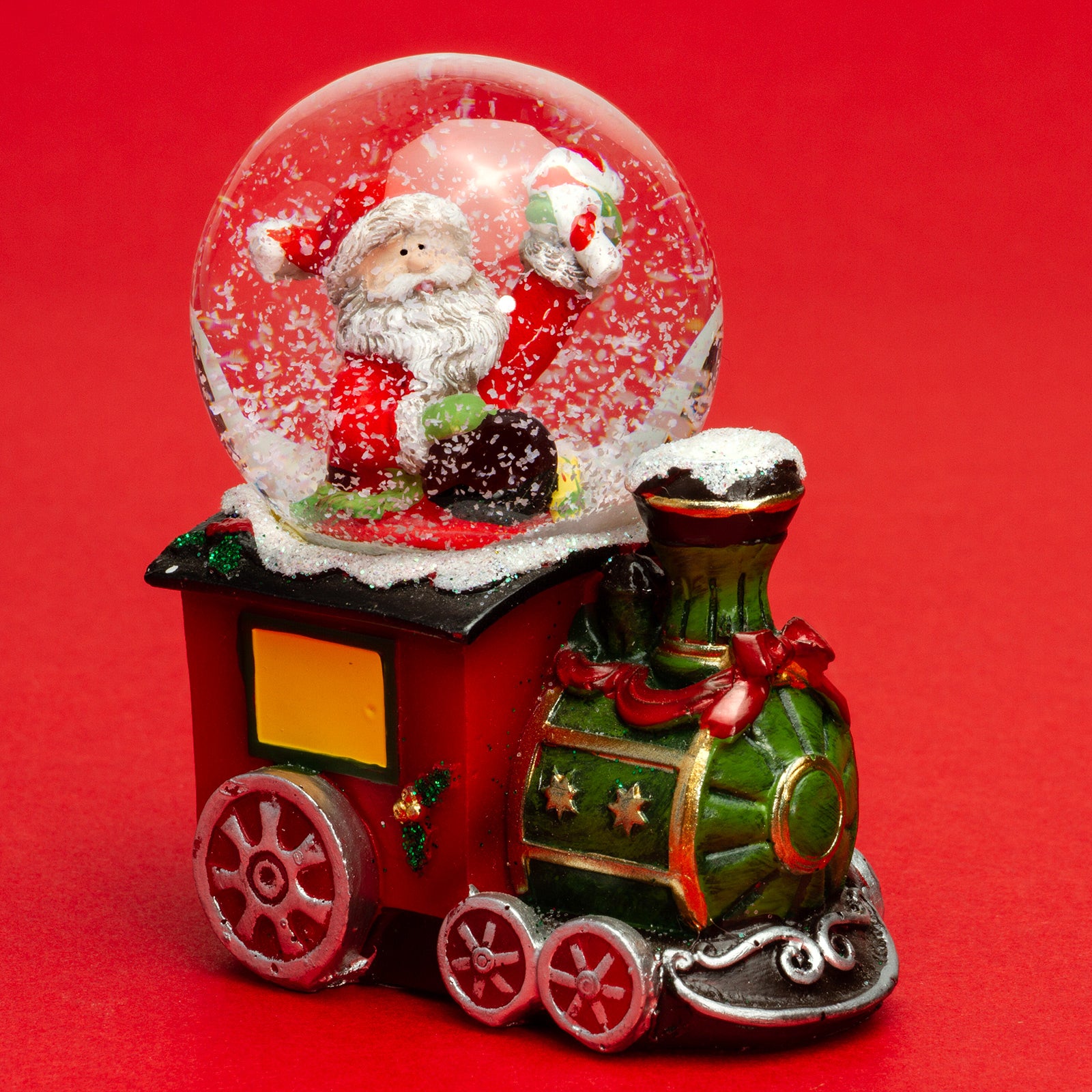 Kleine Schneekugel mit einem Glasdurchmesser von ca. 45 mm. Mit dem lustige "Weihnachtsmann in der Lokomotive" Motiv ist dieses kleine Kunstwerk perfekt für leuchtende Kinderaugen. In der Flüssigkeit der Glaskugel befinden sich kleine künstliche Schneeflocken, die beim und nach dem Schütteln der Kugel für eine ordentliches Schneegestöber sorgen. Der liebevoll von Hand bemalte und verzierte Sockel besteht aus Gießkeramik, einer Mischung aus Steinmehl und synthetischen, bindenden Anteilen. So können die zahlreichen Details und Formen bestens gestaltet werden. Ein kleines Kunstwerk von SIKORA Weihnachtswelt.