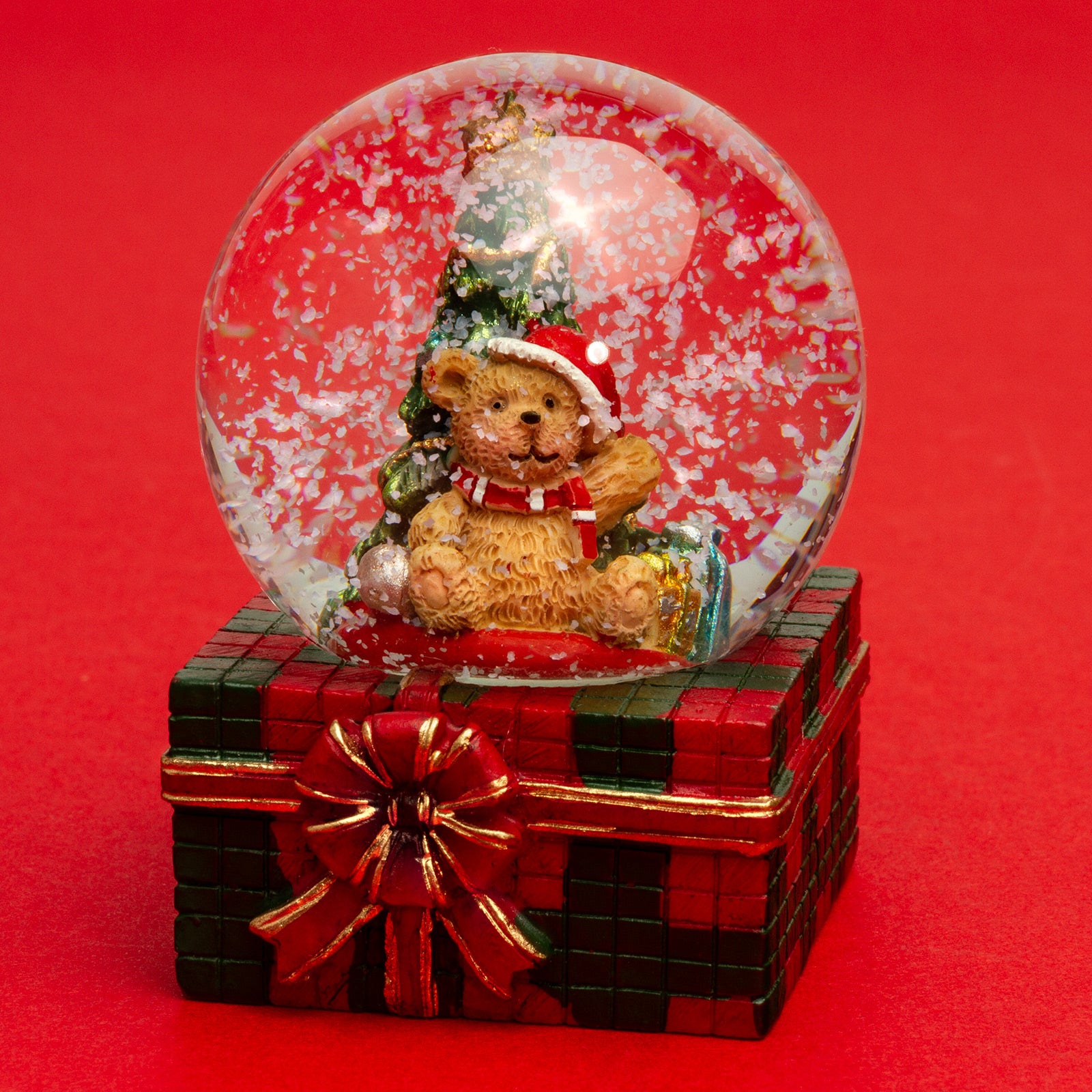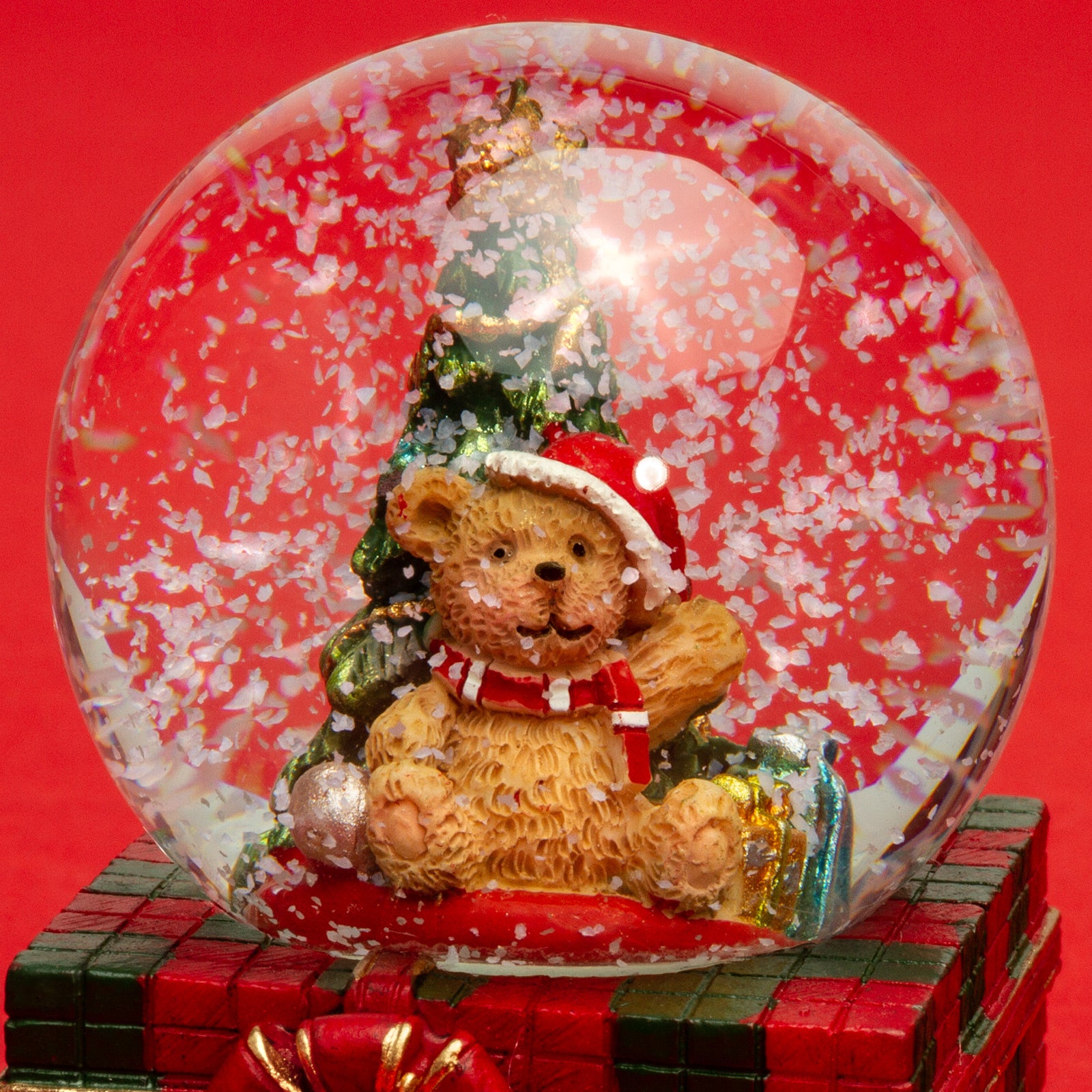 Kleine Schneekugel mit einem Glasdurchmesser von ca. 45 mm. Mit dem lustige "Bär mit Weihnachtsbaum" Motiv ist dieses kleine Kunstwerk perfekt für leuchtende Kinderaugen. In der Flüssigkeit der Glaskugel befinden sich kleine künstliche Schneeflocken, die beim und nach dem Schütteln der Kugel für eine ordentliches Schneegestöber sorgen. Der liebevoll von Hand bemalte und verzierte Sockel besteht aus Gießkeramik, einer Mischung aus Steinmehl und synthetischen, bindenden Anteilen. So können die zahlreichen Details und Formen bestens gestaltet werden. Ein kleines Kunstwerk von SIKORA Weihnachtswelt.