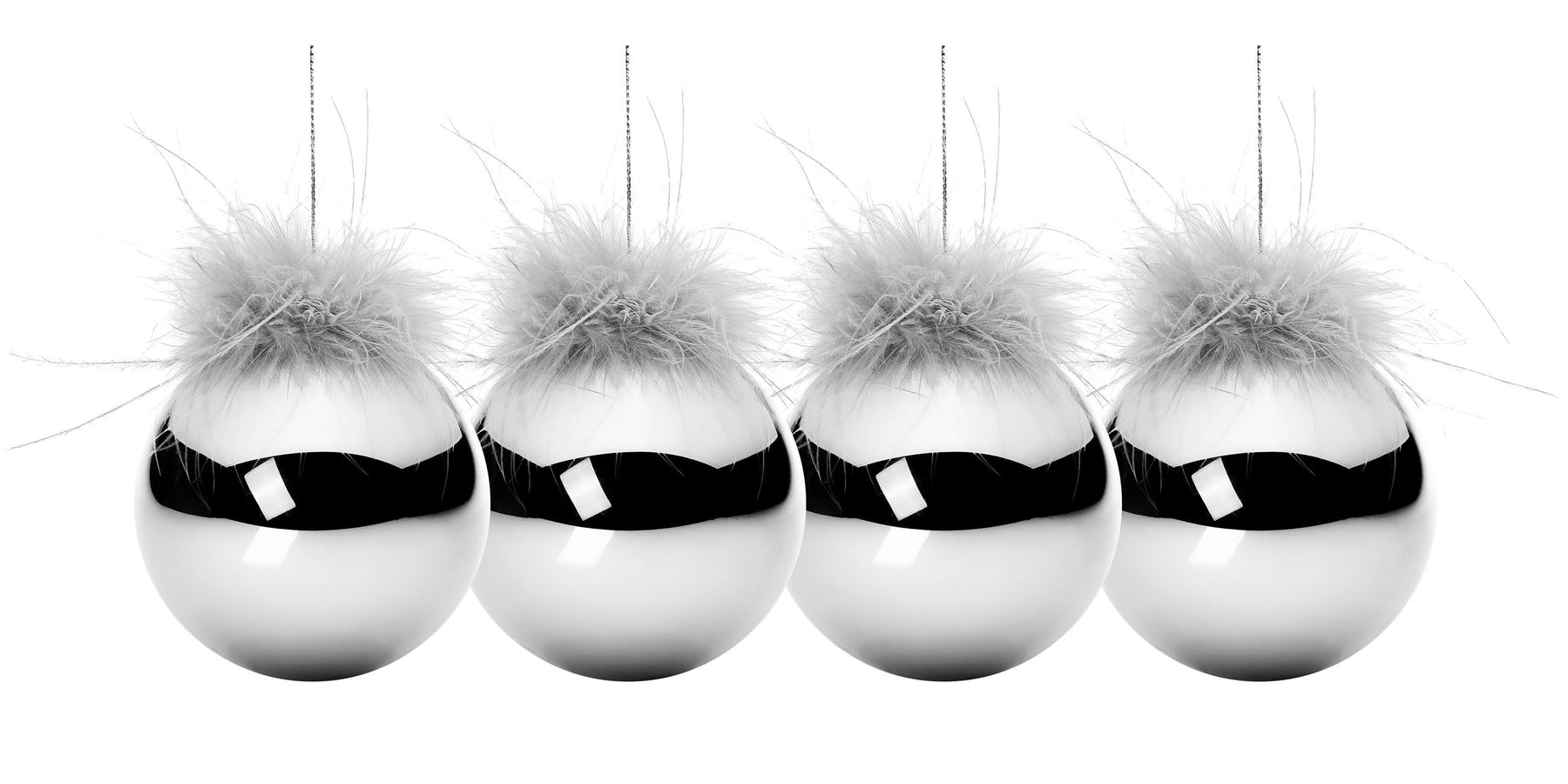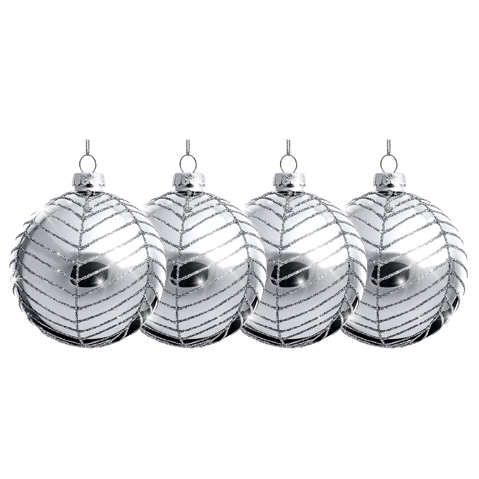 SIKORA Highlights 4er Set ausgefallene Christbaumkugeln besondere Weihnachtskugel Christbaumschmuck aus Glas Silber