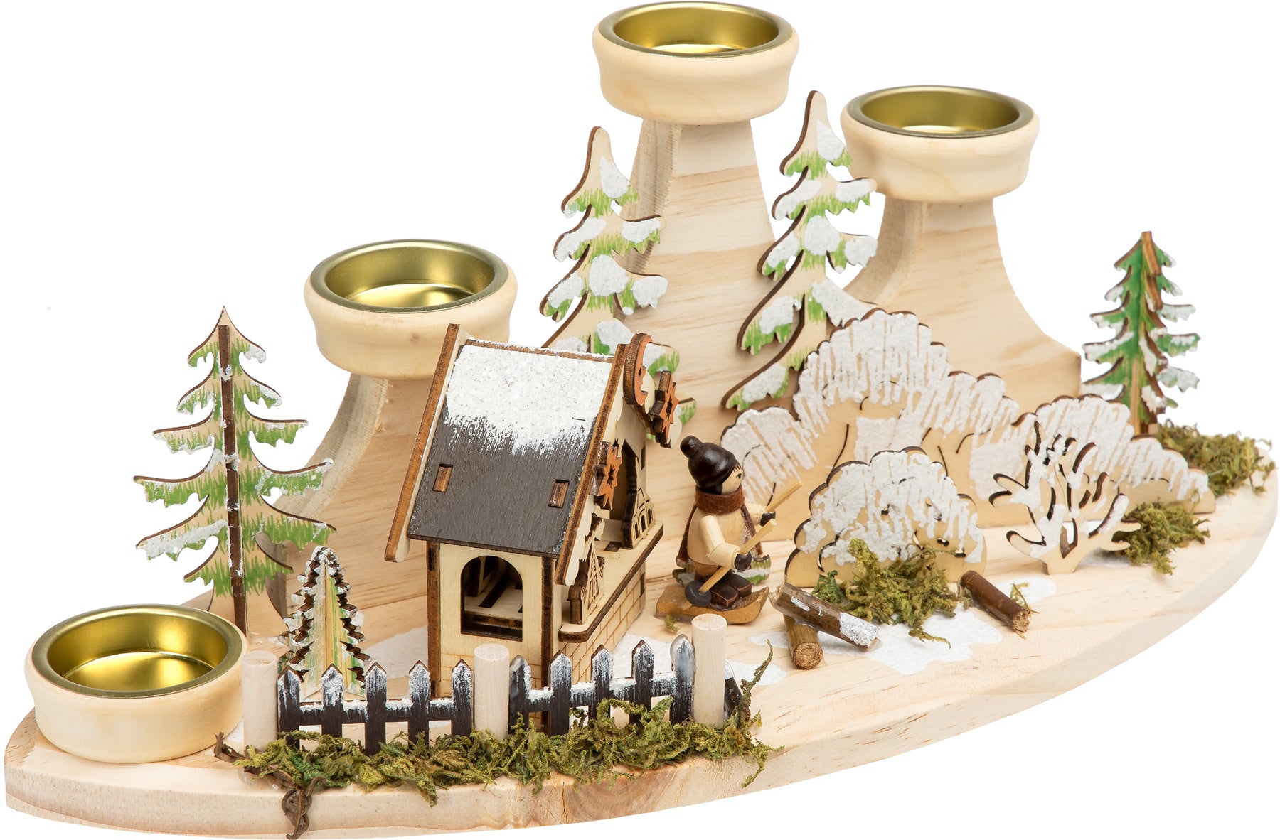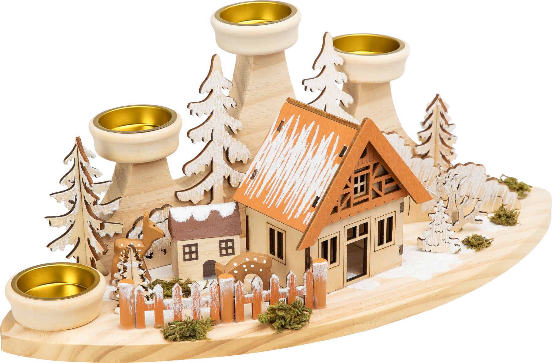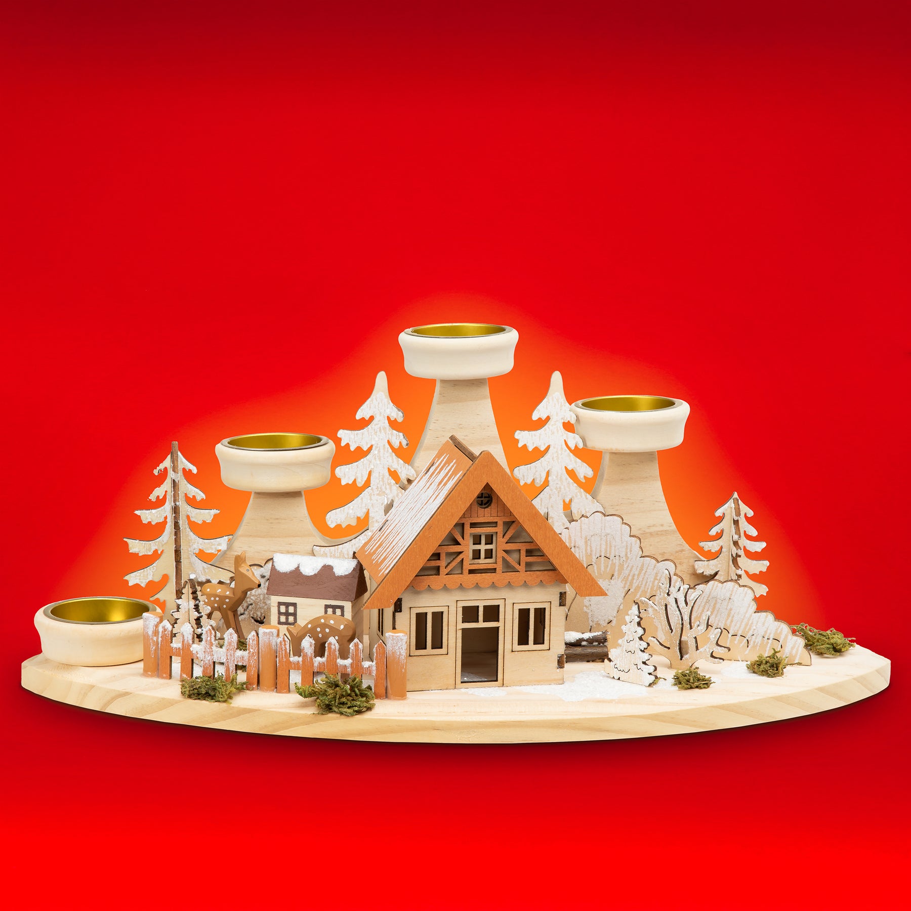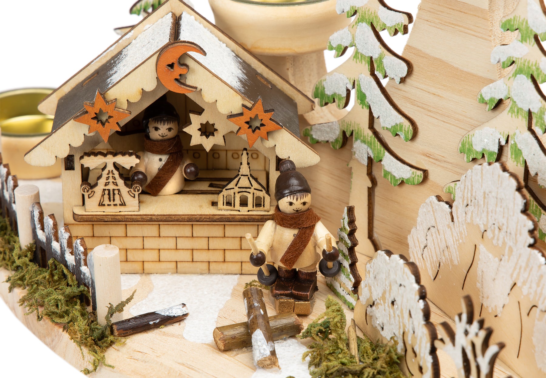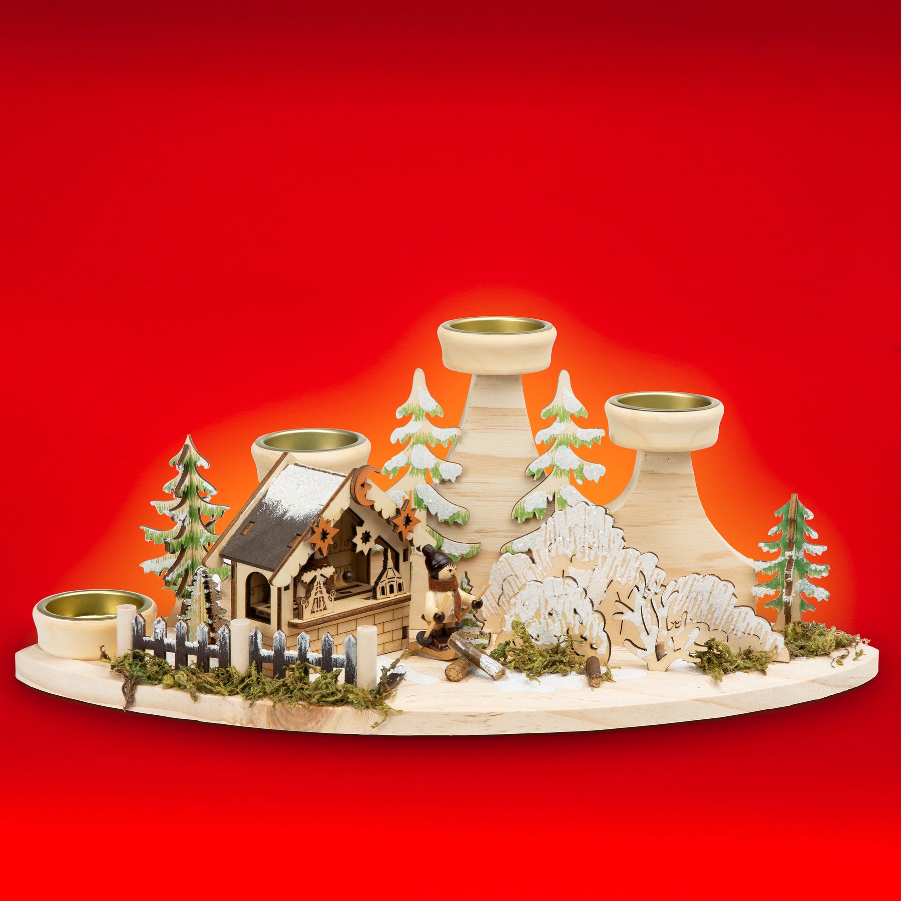 Mit einer Höhe von ca. 14,5 cm, einer Breite von ca. 37 cm und einer Tiefe von ca. 16,5 cm passt dieser Teelichthalter hervorragend auf Tische, Fensterbänke oder Sideboards. SIKORA Weihnachtswelt
