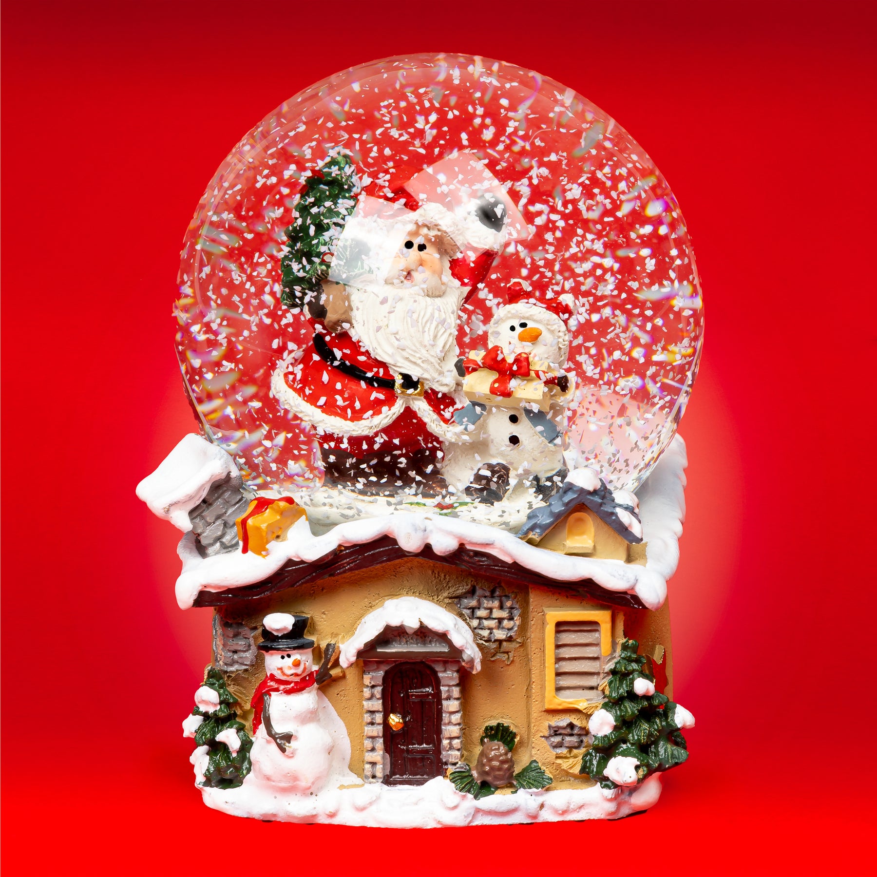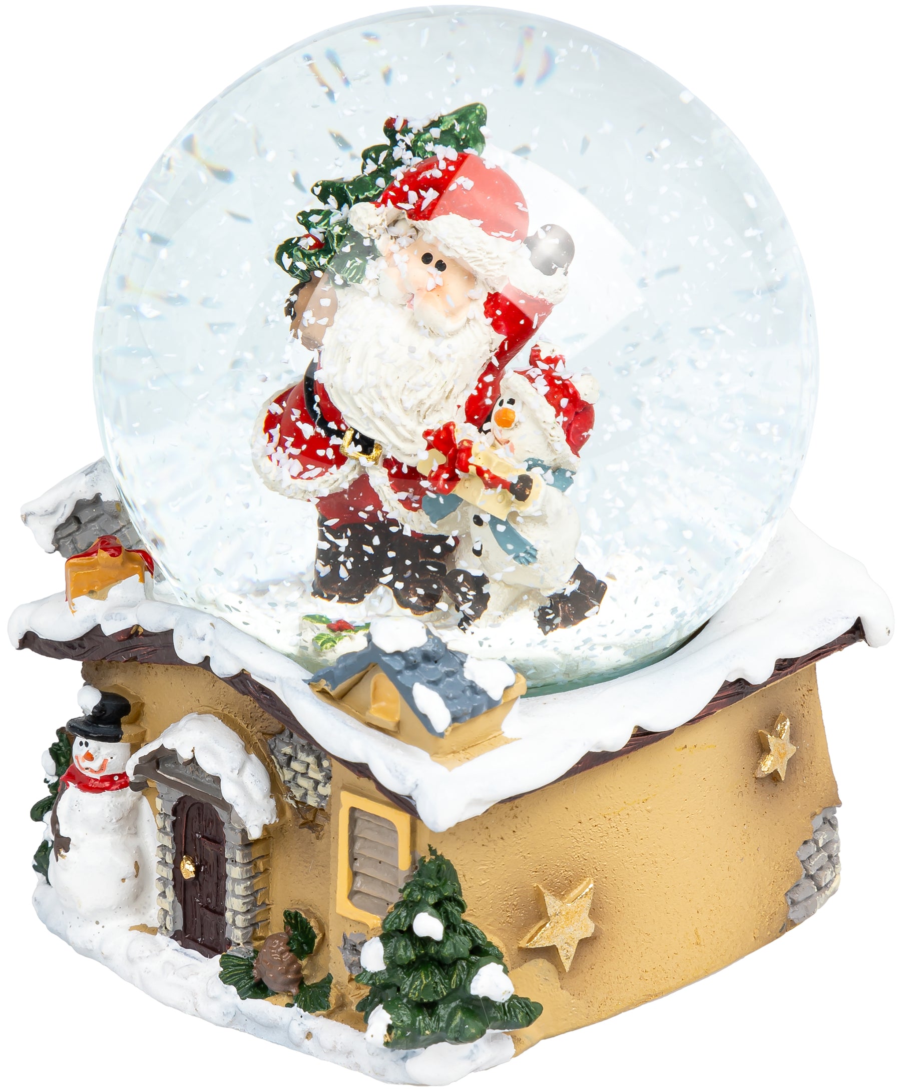 Mittelgroße Schneekugel mit einem Glasdurchmesser von ca. 65 mm. Mit dem lustigen "Weihnachtsmann mit Schneemann" Motiv ist dieses kleine Kunstwerk perfekt für leuchtende Kinderaugen. In der Flüssigkeit der Glaskugel befinden sich kleine künstliche Schneeflocken, die beim und nach dem Schütteln der Kugel für eine ordentliches Schneegestöber sorgen. Der liebevoll von Hand bemalte und verzierte Sockel besteht aus Gießkeramik, einer Mischung aus Steinmehl und synthetischen, bindenden Anteilen. So können die zahlreichen Details und Formen bestens gestaltet werden. Ein kleines Kunstwerk von SIKORA Weihnachtswelt.