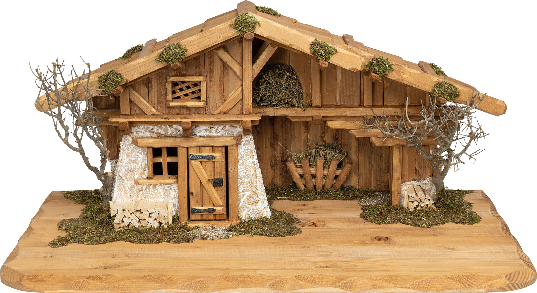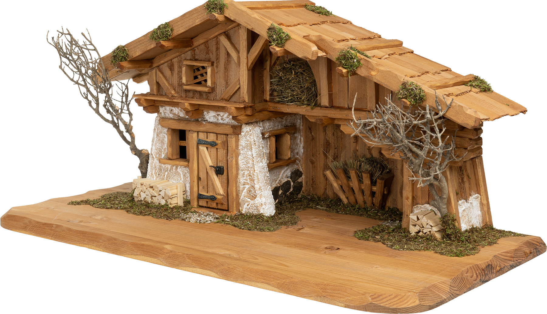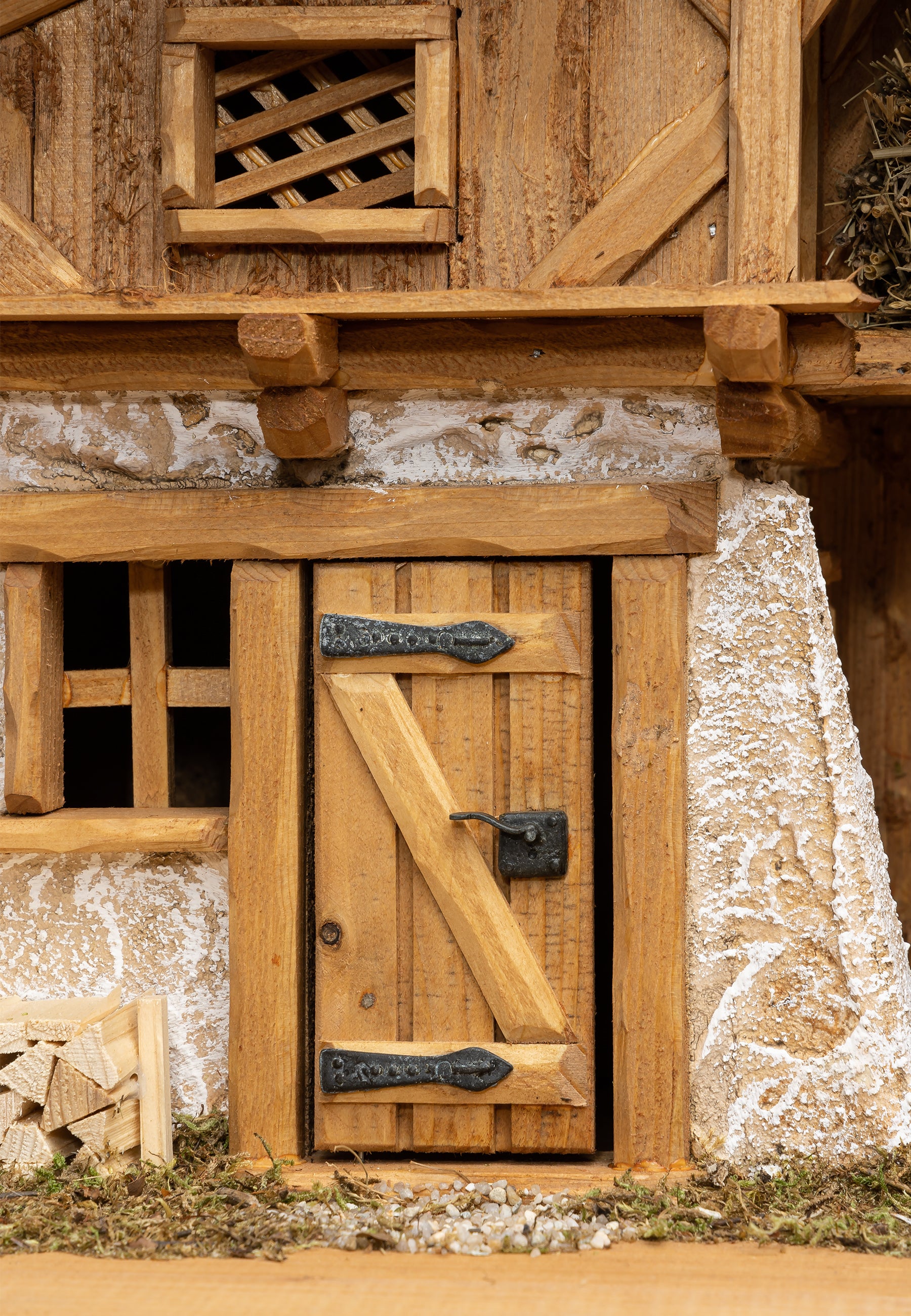 Dieser Stall wurde mit viel Liebe zum Detail in sorgfältiger Handarbeit hergestellt. Dank seiner realistischen Gestaltung ist er ideal geeignet, um eine authentische, heimatliche Weihnachtsdarstellung zu schaffen.