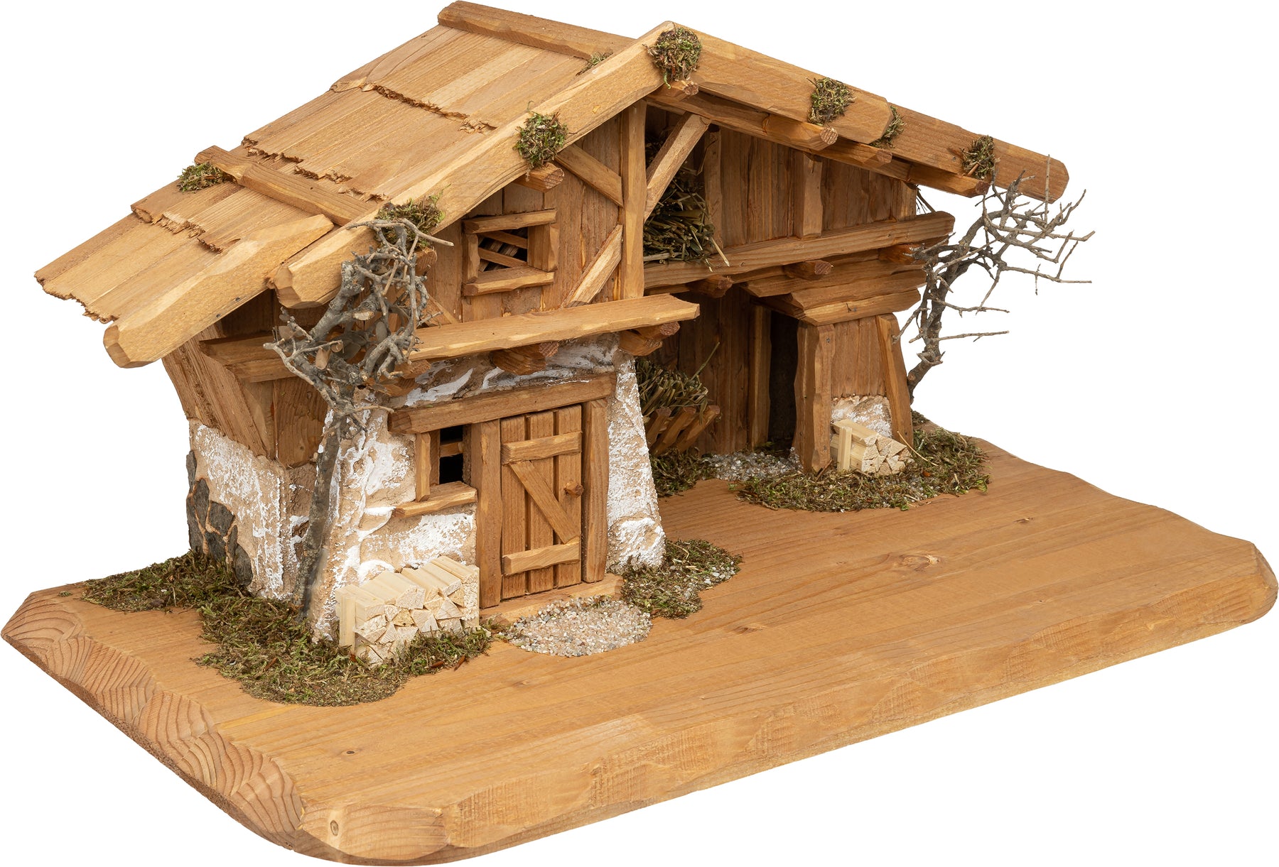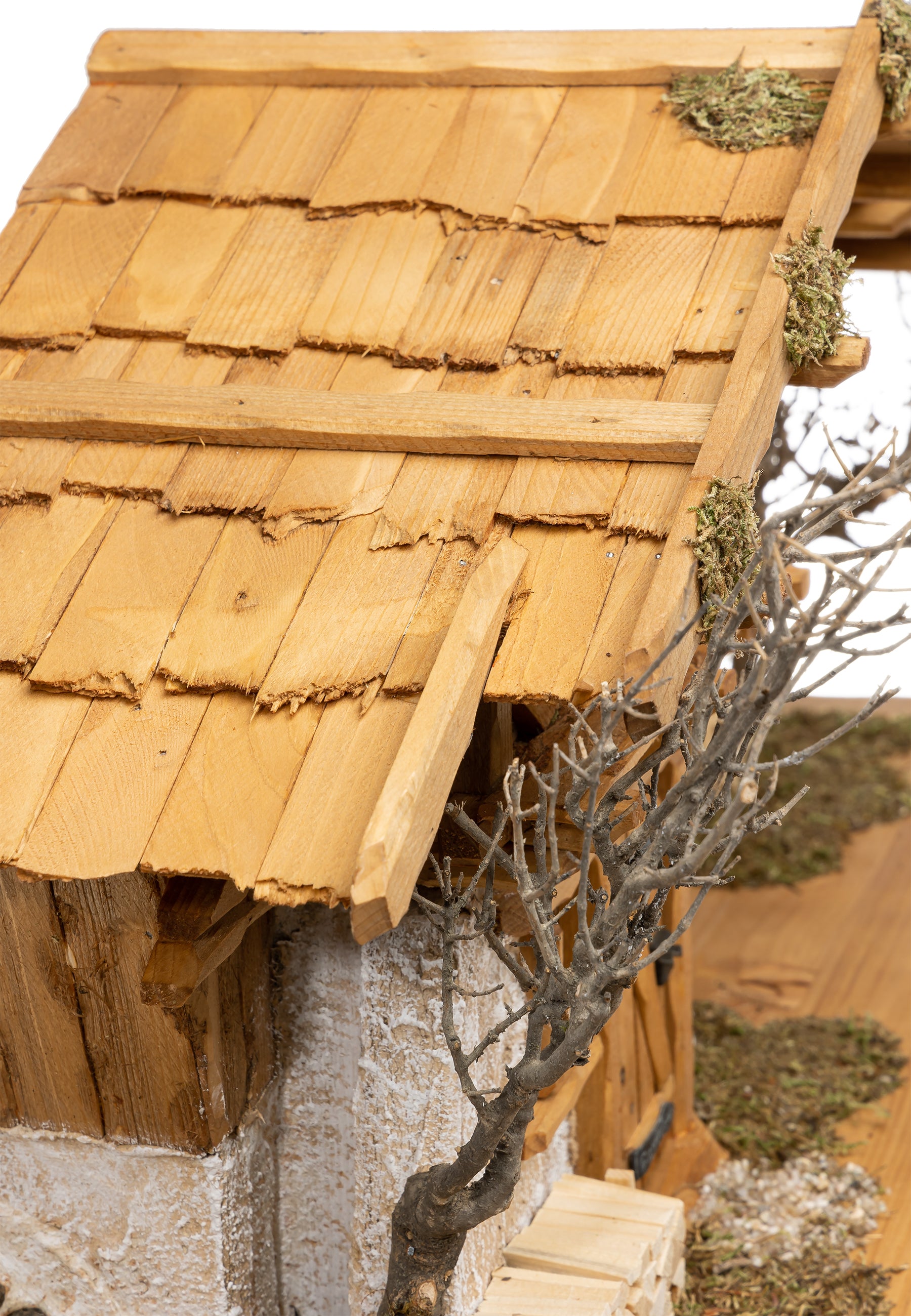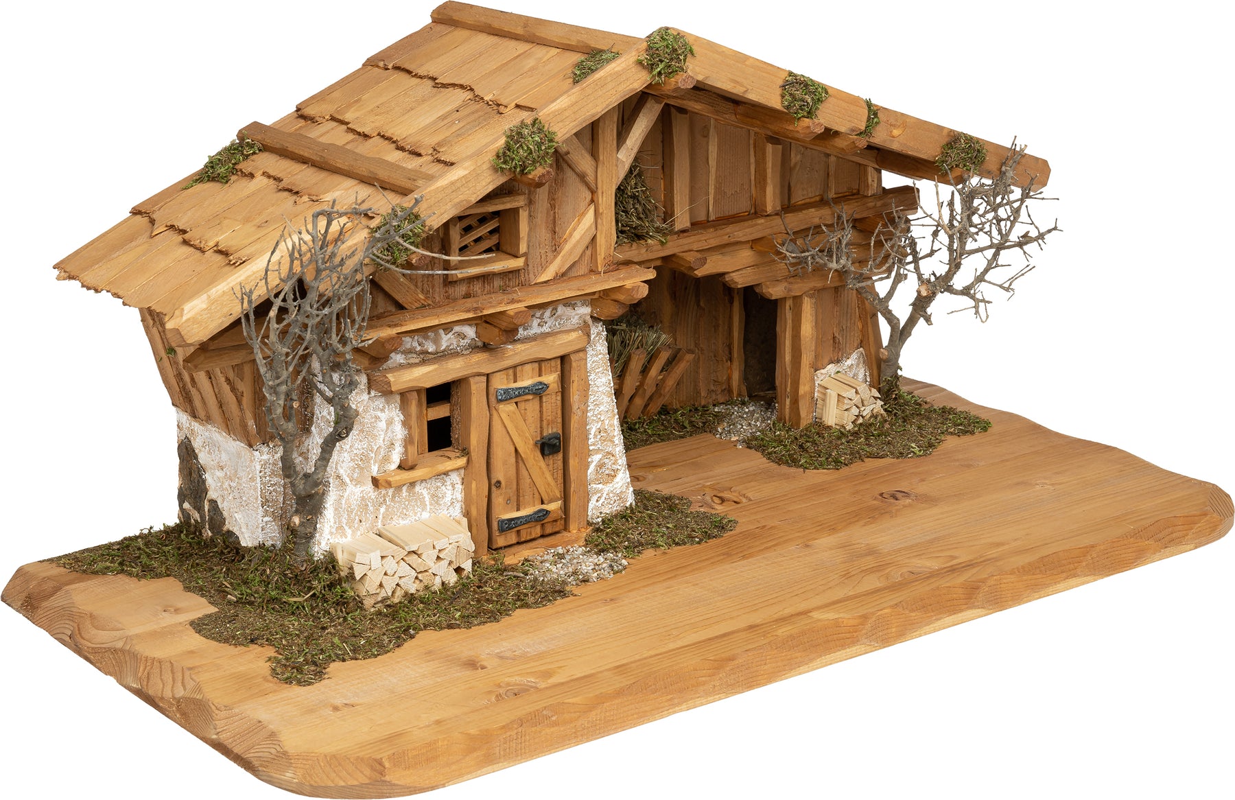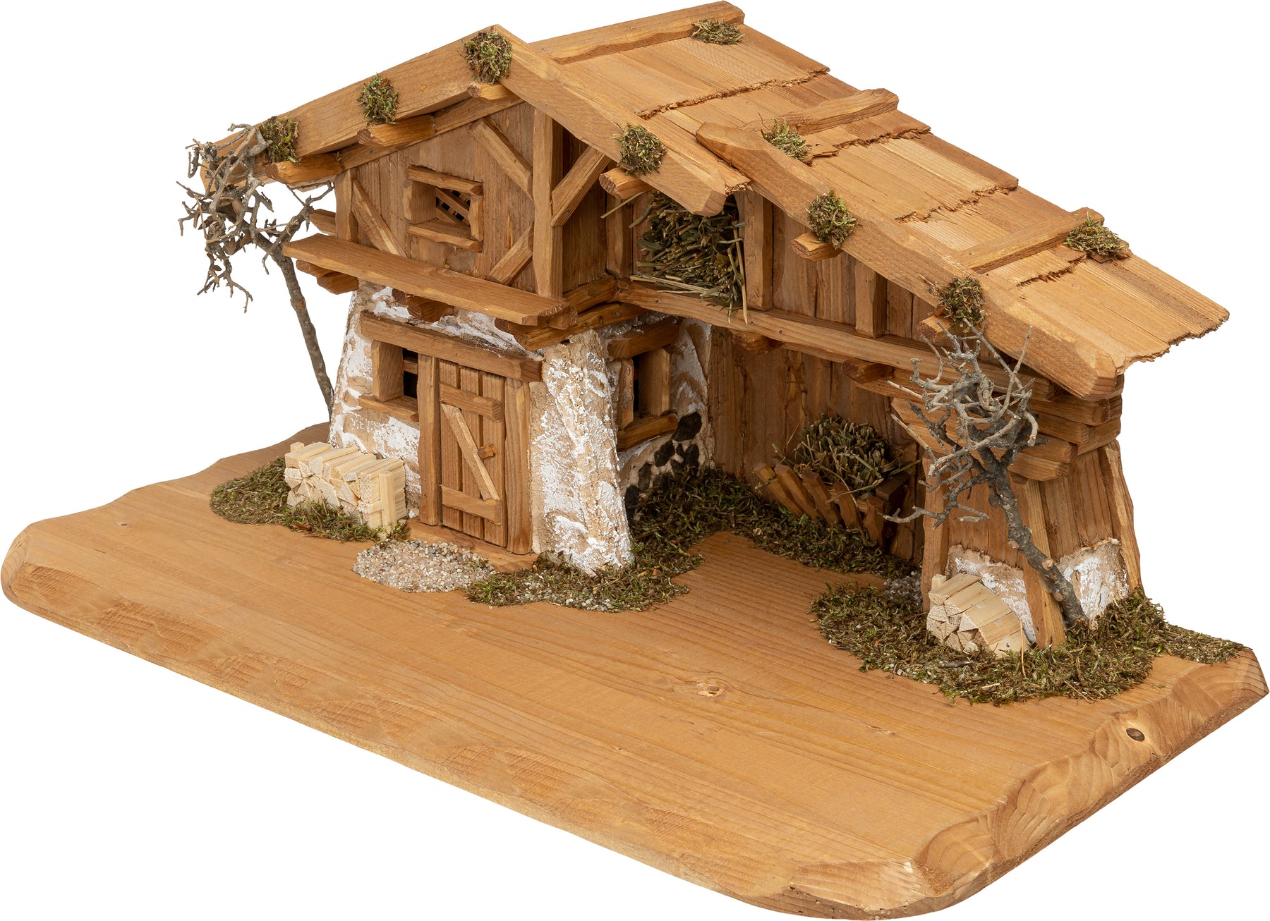Dieser Stall wurde mit viel Liebe zum Detail in sorgfältiger Handarbeit hergestellt. Dank seiner realistischen Gestaltung ist er ideal geeignet, um eine authentische, heimatliche Weihnachtsdarstellung zu schaffen.