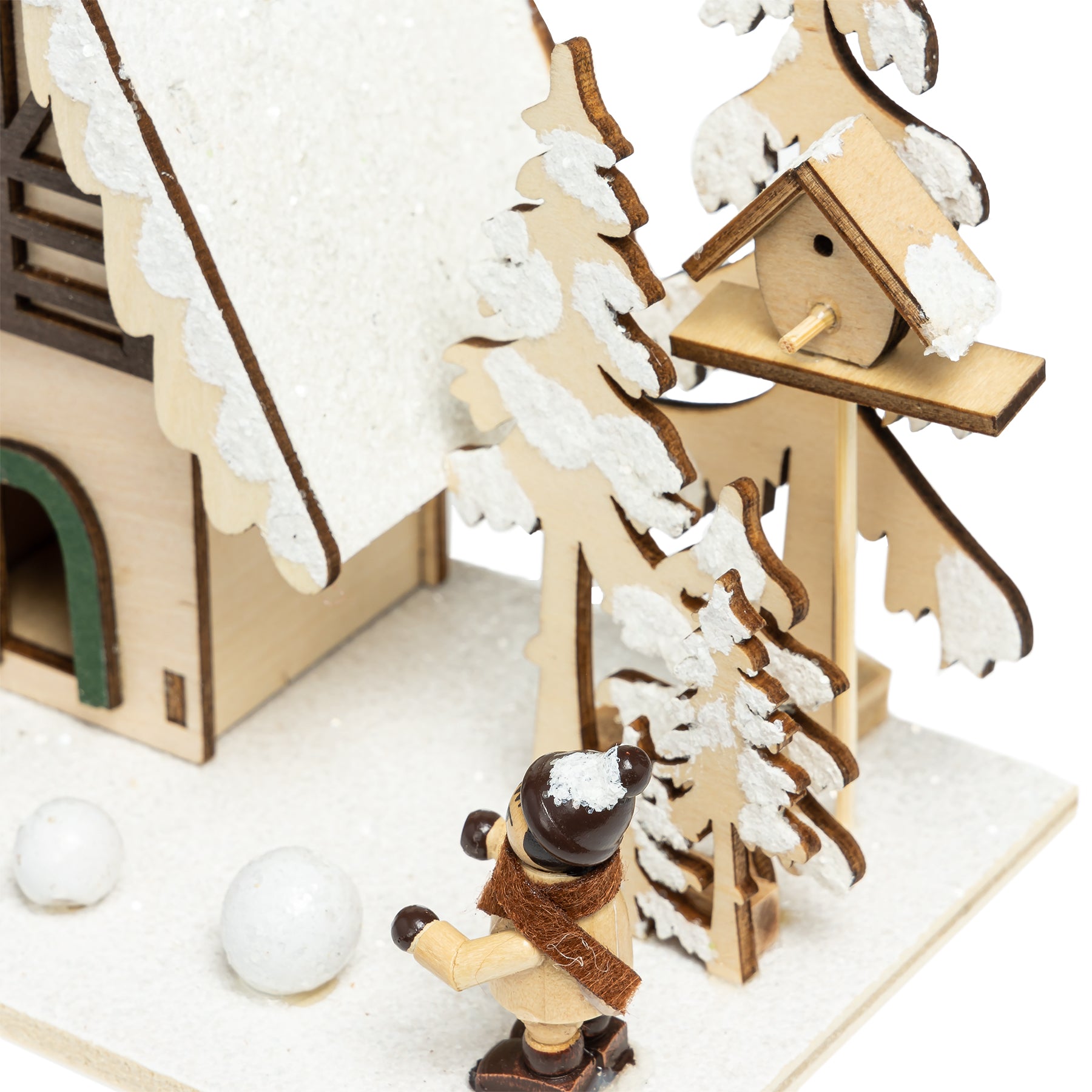 Das Räucherhaus beeindruckt mit herrlich winterlichen Farben und Glitzerverzierungen und einem hohen Detailreichtum der einzelnen Figuren. Für unsere Räucherdekorationen verwenden wir ausschließlich gut abgelagertes und durchgetrocknetes Holz das sich im Laufe der Zeit nicht verzieht oder reißt. Somit haben Sie viele Jahre Freude an Ihrer neuen Weihnachtsdekoration. Das Häuschen ist abnehmbar und im Innern befindet sich eine kleine Metallhalterung zur Aufnahme wohlduftender Räucherkegel. Die im Häuschen eingearbeitete Öffnung sorgen für eine Art Mini-Kamin-Effekt und lässt so die Luft sanft an der Räucherkerze vorbeiströmen und aus dem Kamin wieder austreten. Der Artikel hat eine Höhe von ca. 13.2 cm, eine Breite von ca. 15 cm und eine Tiefe von ca. 10 cm. SIKORA Weihnachtswelt.