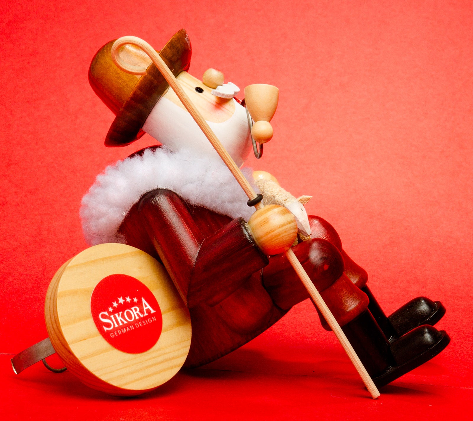Die Räuchermännchen dieser Serie beeindrucken mit herrlich weihnachtlichen Farben und einem hohen Detailreichtum der einzelnen Figuren. Die Grundform der einzelnen Motive überzeugt durch ihre harmonische Gestaltung und perfekt aufeinander abgestimmte Proportionen. In liebevoller Handarbeit werden zunächst die zahlreichen Einzelteile gedrechselt, verleimt und im Anschluß von Hand bemalt. Für unsere Räuchermännchen verwenden wir ausschließlich gut abgelagertes und durchgetrocknetes Holz das sich im Laufe der Zeit nicht verzieht oder reißt. Somit haben Sie viele Jahre Freude an Ihrem neuen Mitbewohner. Die Männchen haben im Innern eine innovative Metallschlinge zur Aufnahme wohlduftender Räucherkegel. Die im Boden eingearbeiteten Öffnungen sorgen für eine Art Mini-Kamin-Effekt und lassen so die Luft sanft an der Räucherkerze vorbeiströmen und aus der Mundöffnung wieder austreten. Die Räuchermännchen sind erhältlich mit einer Gesamthöhe von ca. 16,5 cm. Sie sind aus ausgesuchtem Nadelholz gefertigt. Jeder Figur liegt eine kleine Anleitung zur richtigen Handhabung bei. Räucherkerzen sind nicht im Lieferumfang enthalten. SIKORA Weihnachtswelt.