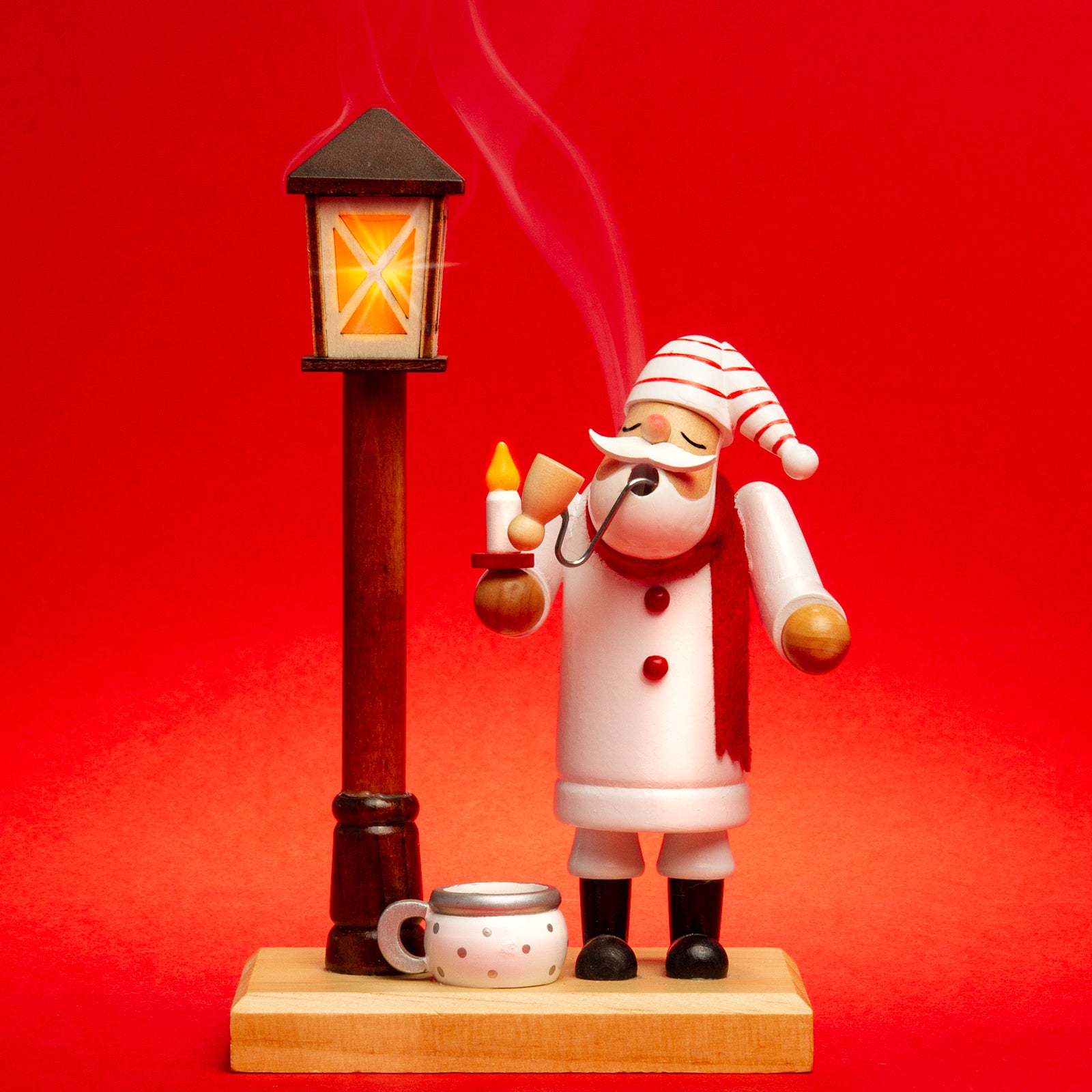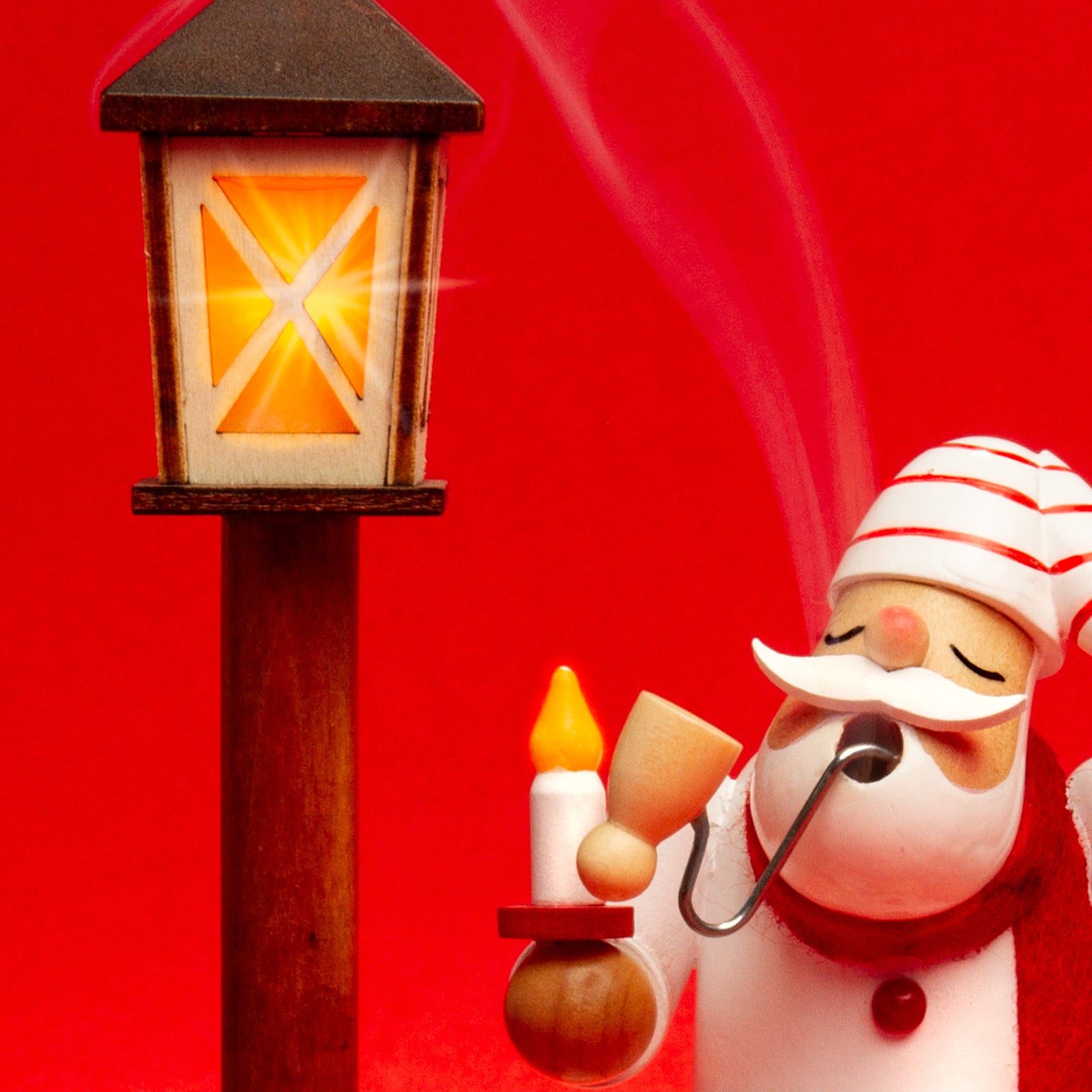 Die Räuchermännchen dieser Serie beeindrucken mit der beleuchteten LED Laterne, ihren herrlich weihnachtlichen Farben und einem hohen Detailreichtum der einzelnen Figuren. Die Grundform der einzelnen Motive überzeugt durch ihre harmonische Gestaltung und perfekt aufeinander abgestimmte Proportionen. In liebevoller Handarbeit werden zunächst die zahlreichen Einzelteile gedrechselt, verleimt und im Anschluß von Hand bemalt. Für unsere Räuchermännchen verwenden wir ausschließlich gut abgelagertes und durchgetrocknetes Holz das sich im Laufe der Zeit nicht verzieht oder reißt. Somit haben Sie viele Jahre Freude an Ihrem neuen Mitbewohner. Die Männchen haben im Innern eine innovative Metallschlinge zur Aufnahme wohlduftender Räucherkegel. Die im Boden eingearbeiteten Öffnungen sorgen für eine Art Mini-Kamin-Effekt und lassen so die Luft sanft an der Räucherkerze vorbeiströmen und aus der Mundöffnung wieder austreten. Auf der Unterseite befindet sich ein kleiner Ein/Aus-Schalter mit dem die Beleuchtung der Laterne gesteuert werden kann. Die Räuchermännchen haben eine Höhe von ca. 18.5 cm. Sie sind aus ausgesuchtem Nadelholz gefertigt. Jeder Figur liegt eine kleine Anleitung zur richtigen Handhabung bei. Räucherkerzen sind nicht im Lieferumfang enthalten. Eine Batterie zur Beleuchtung der Laterne liegt bei. SIKORA Weihnachtswelt.