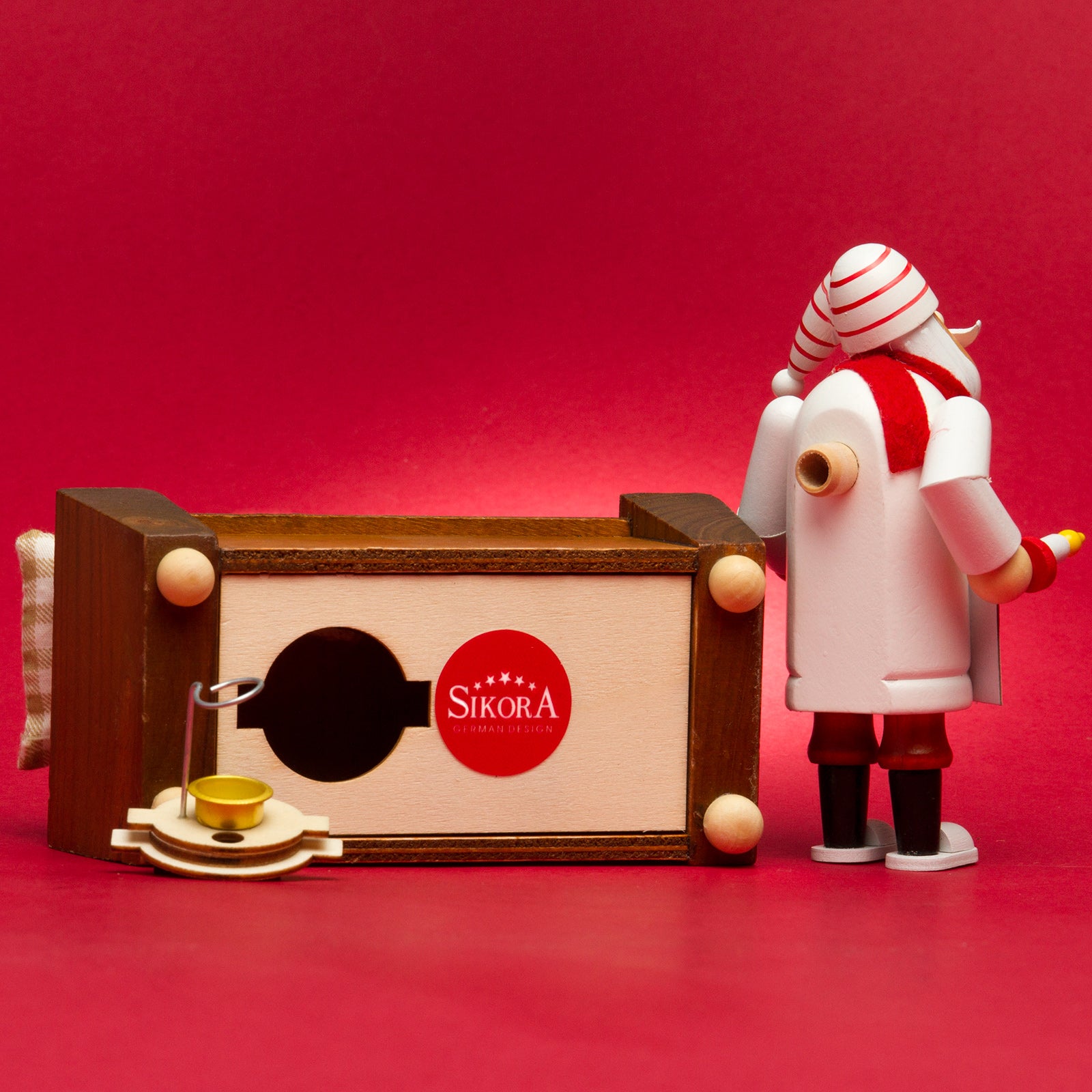 Die aufwändig gestalteten Räuchermännchen auf dem Sofa beeindrucken mit ihren herrlich weihnachtlichen Farben und einem hohen Detailreichtum. Die Form der Motive überzeugt durch ihre harmonische Gestaltung und die perfekt aufeinander abgestimmte Proportionen. In liebevoller Handarbeit werden zunächst die zahlreichen Einzelteile gedrechselt, verleimt und im Anschluss von Hand bemalt. Für unsere Räuchermännchen verwenden wir ausschließlich gut abgelagertes und durchgetrocknetes Holz das sich im Laufe der Zeit nicht verzieht oder reißt. Somit haben Sie viele Jahre Freude an Ihrem neuen Mitbewohner. Die im Boden des Sofas eingearbeiteten Öffnungen sorgen für eine Art Mini-Kamin-Effekt und lassen so die Luft sanft an der Räucherkerze vorbeiströmen und aus der Mundöffnung des Weihnachtsmannes wieder austreten. Der Figur liegt eine kleine Anleitung zur richtigen Handhabung bei. Räucherkerzen sind nicht im Lieferumfang enthalten.