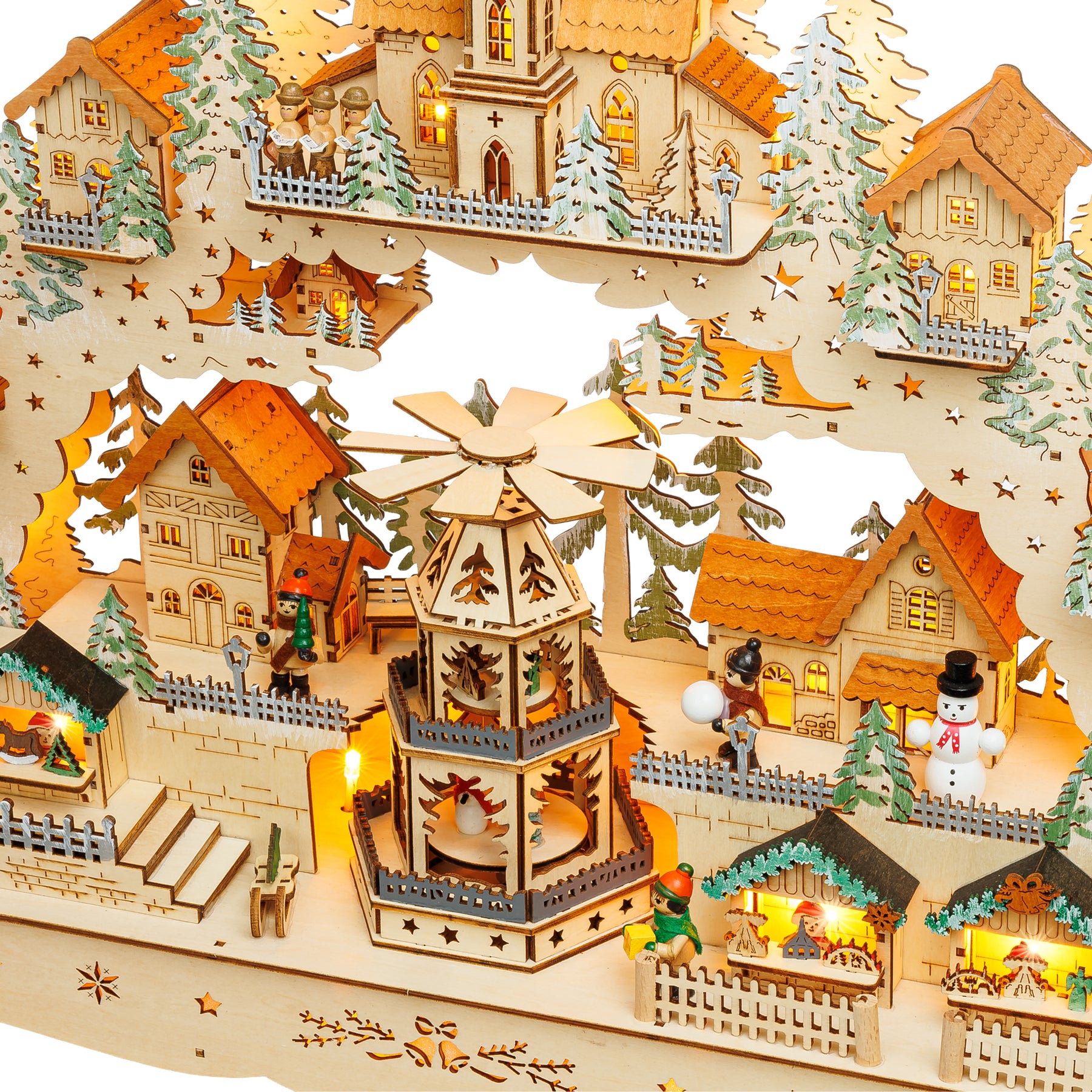 SIKORA LB14 beleuchteter LED XXL Holz Schwibbogen Weihnachtsdorf mit drehender XL Pyramide Lichterbogen inklusive Netzteil