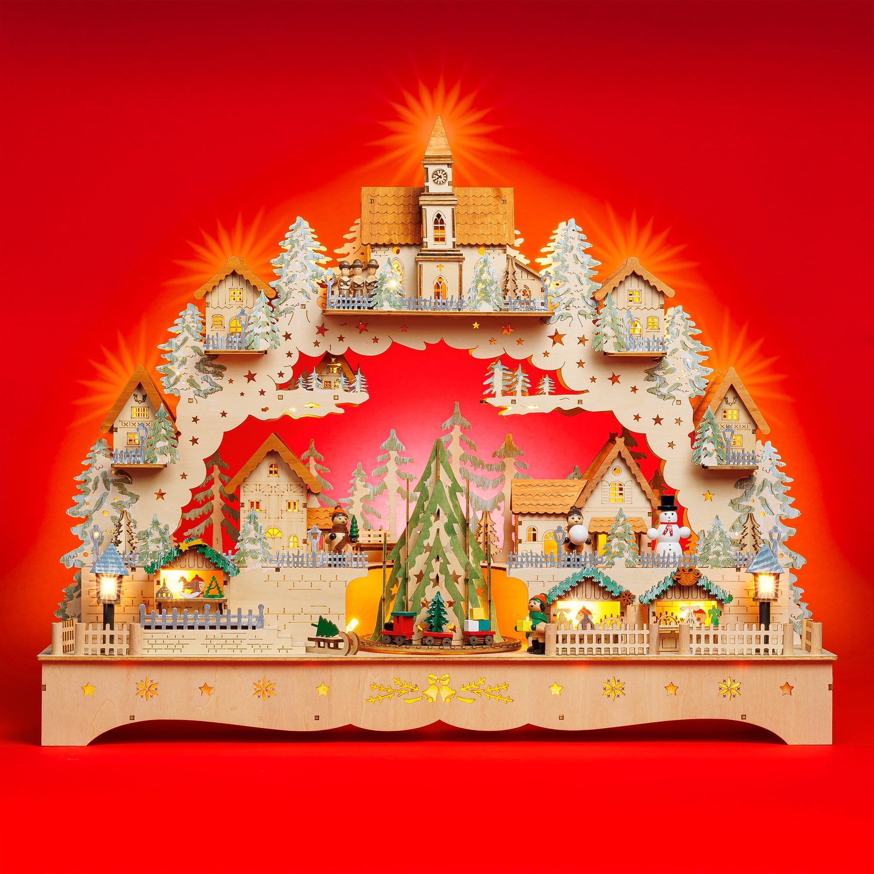 - in diesem Schwibbogen ist ein motorbetriebener Baum eingebaut die sich seitlich An- uns Ausschalten lässt. Ein echtes Highlight in Ihrer Weihnachtsdeko !