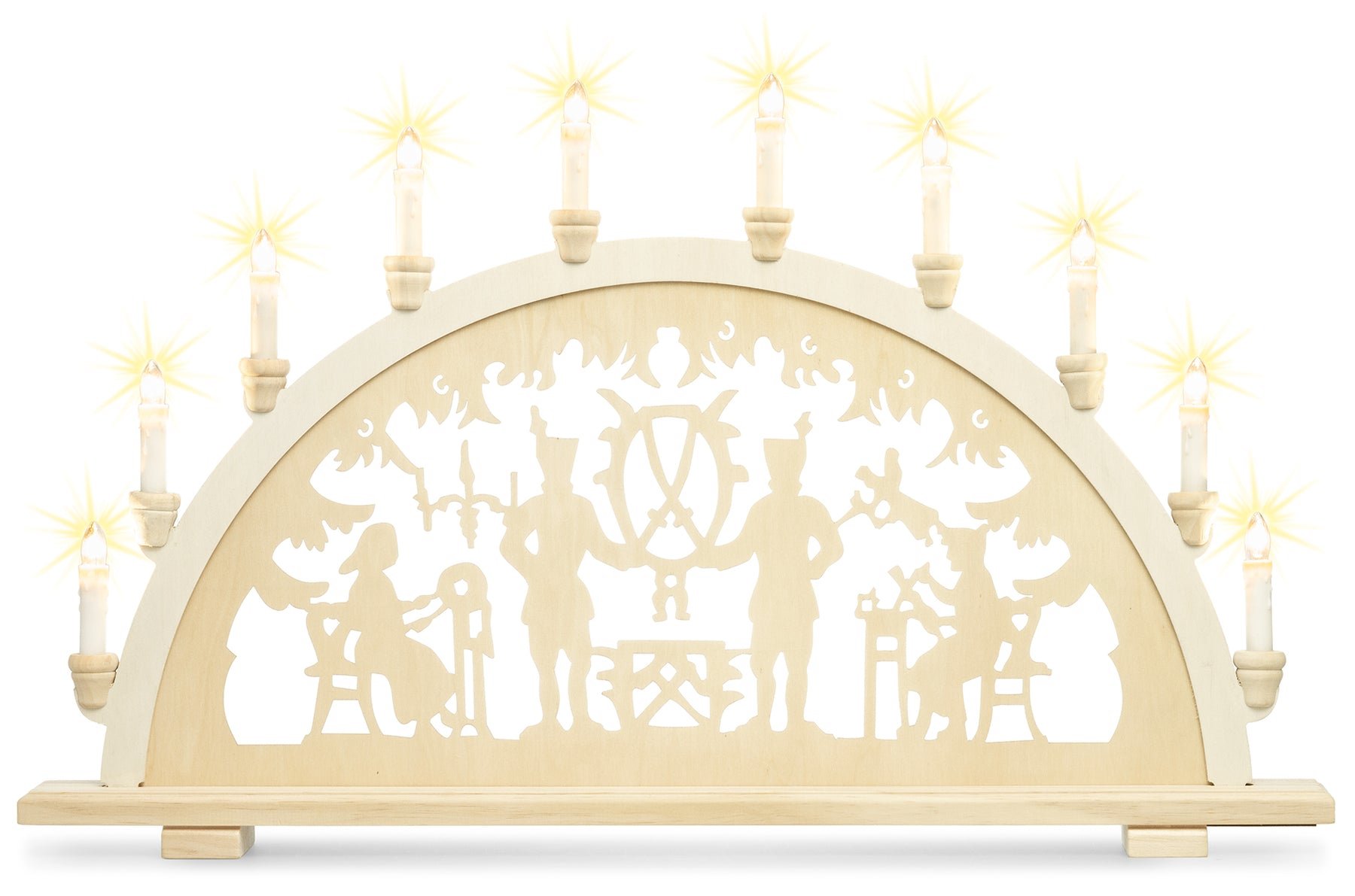 SIKORA LB33-10 klassischer XXL Holz Schwibbogen 10-flammig beleuchteter Lichterbogen Motiv BERGMANN Deko Weihnachten Breite ca 71 cm