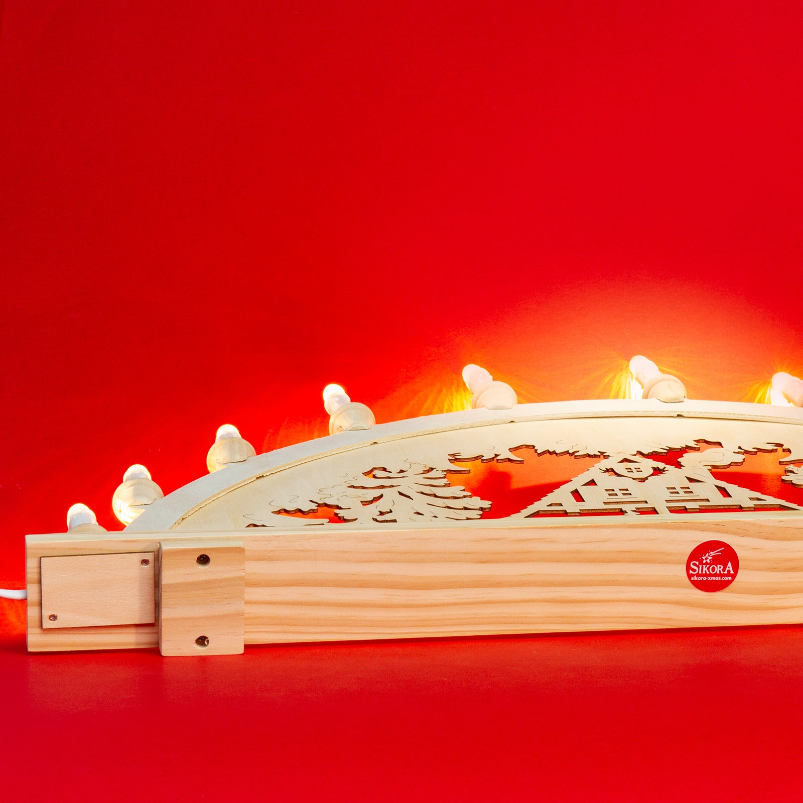 SIKORA LB57-10 klassicher XXL Holz Schwibbogen 10-flammig beleuchteter Lichterbogen Motiv WALDHAUS Deko Weihnachten Breite ca 71 cm