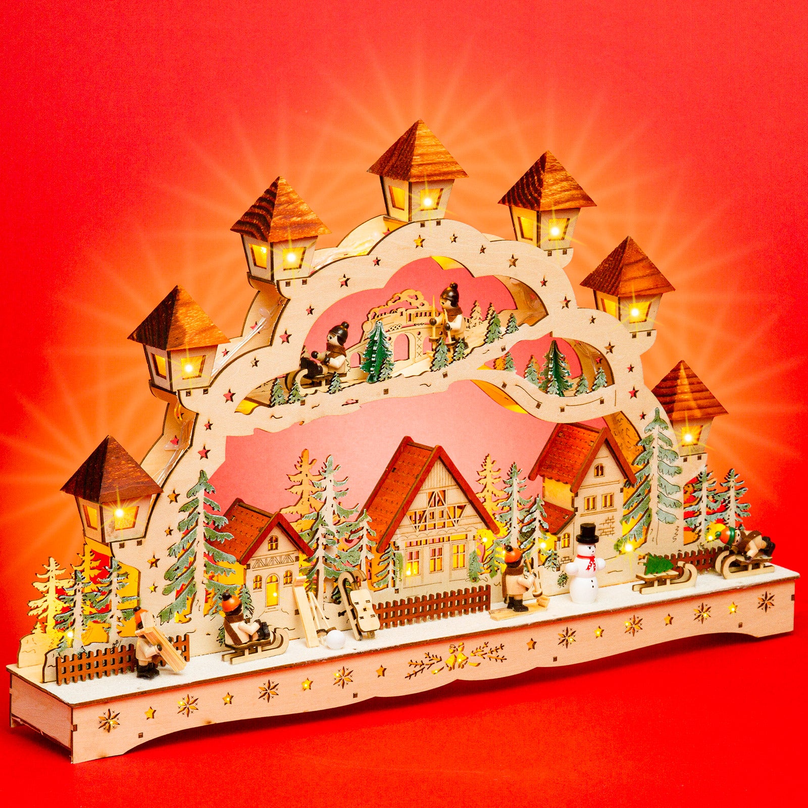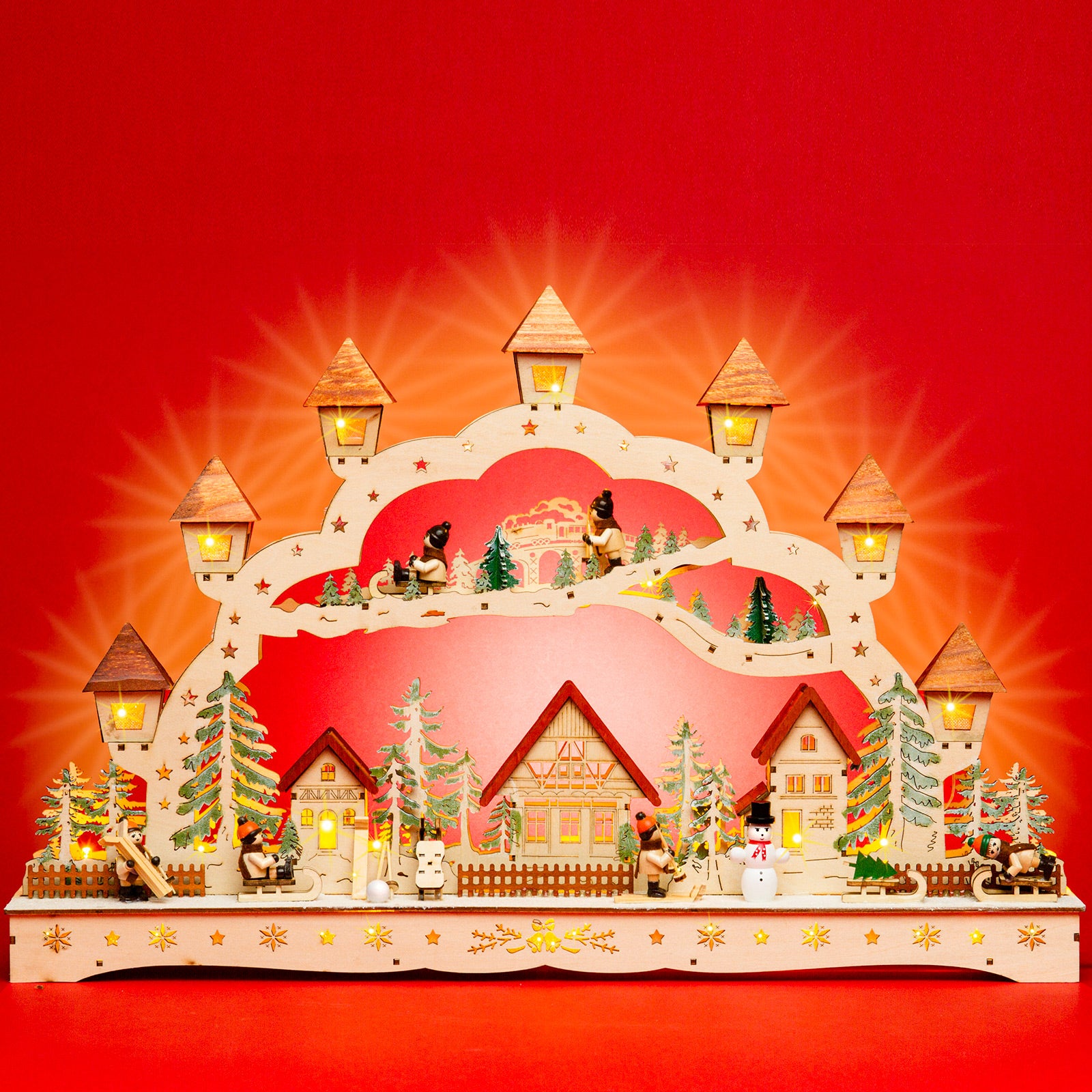 SIKORA LB89 beleuchteter LED XL Holz Schwibbogen WINTERDORF inklusive Trafo