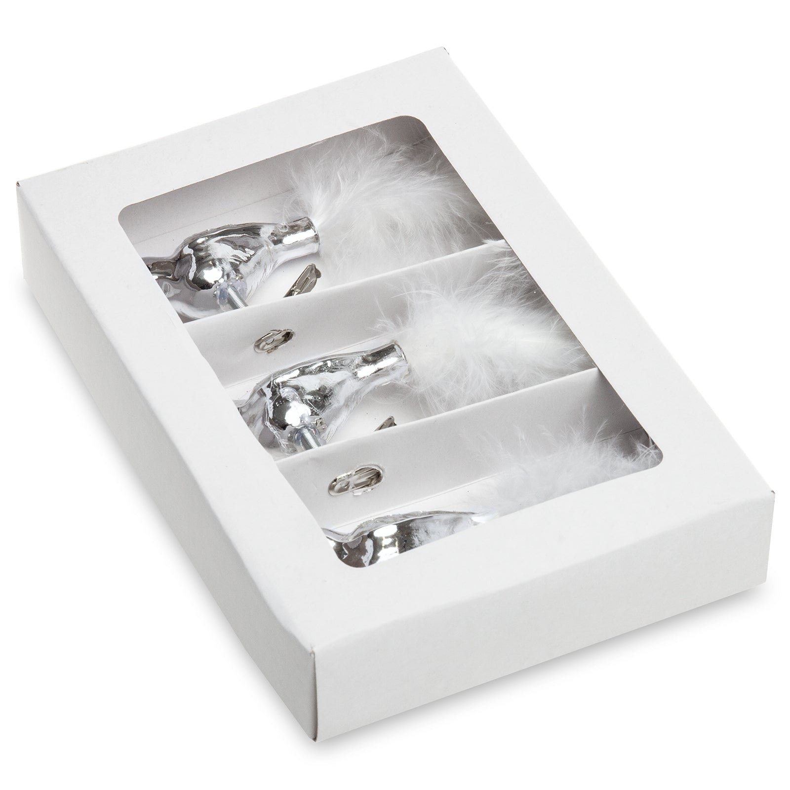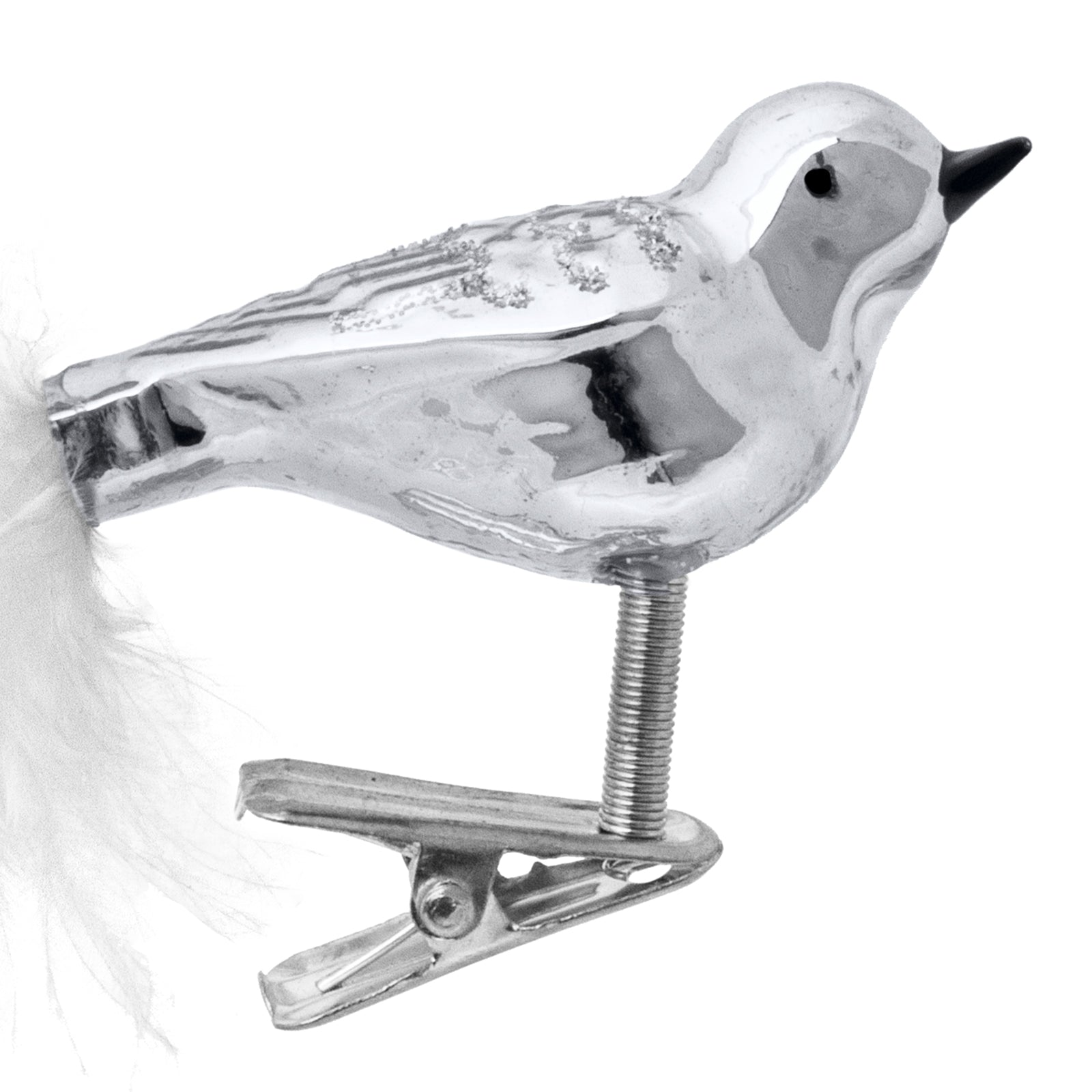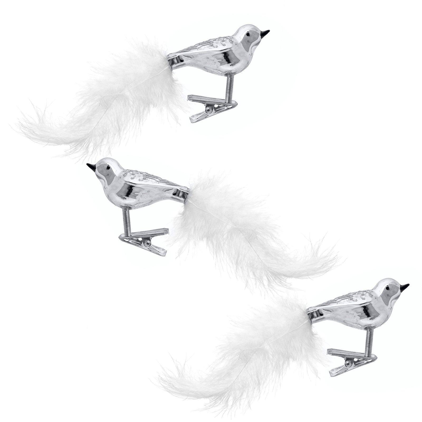 SIKORA BS460 3er Set traditioneller Christbaumschmuck aus Glas kleine Clip Vögel mit Federschwanz - hochglanz - viele Farben