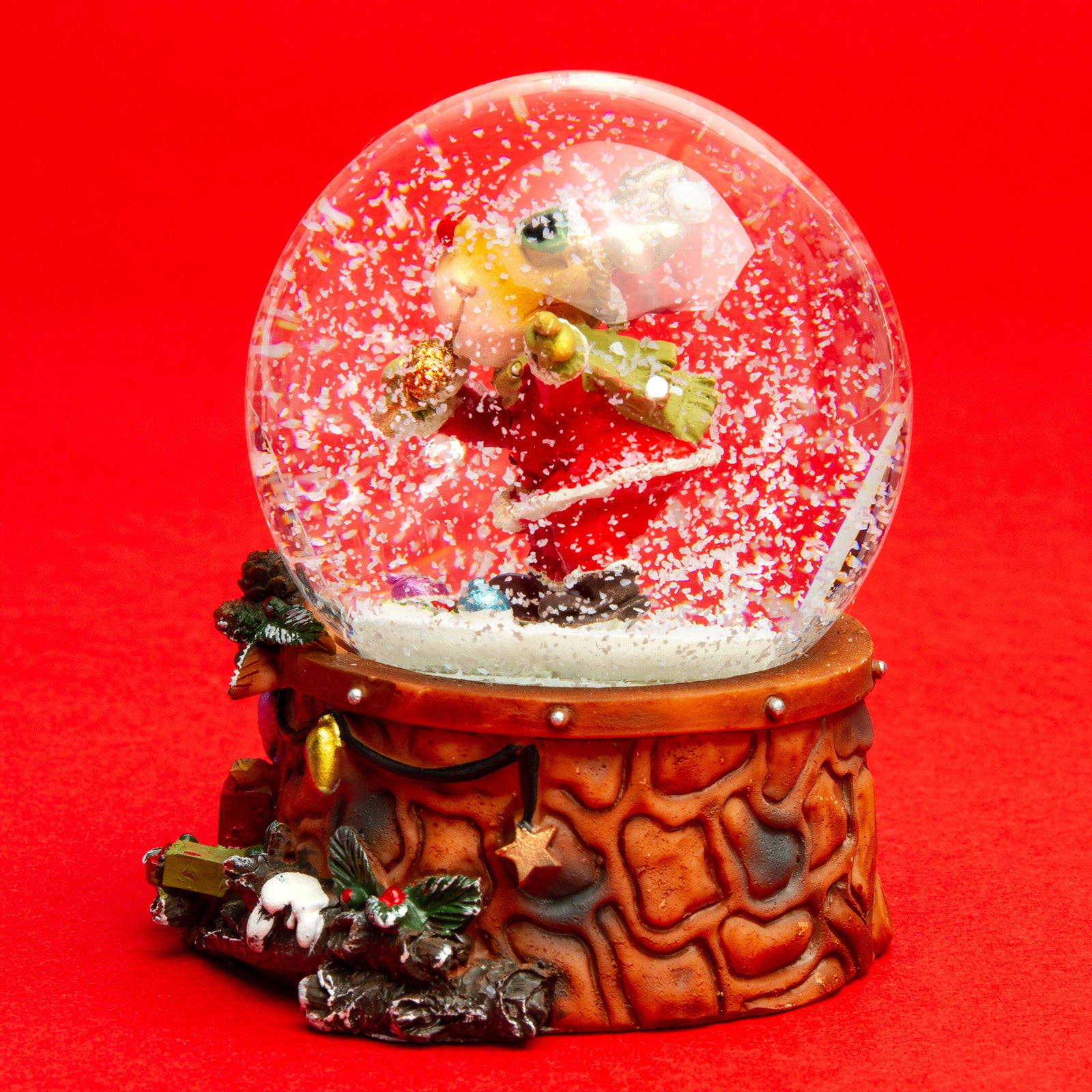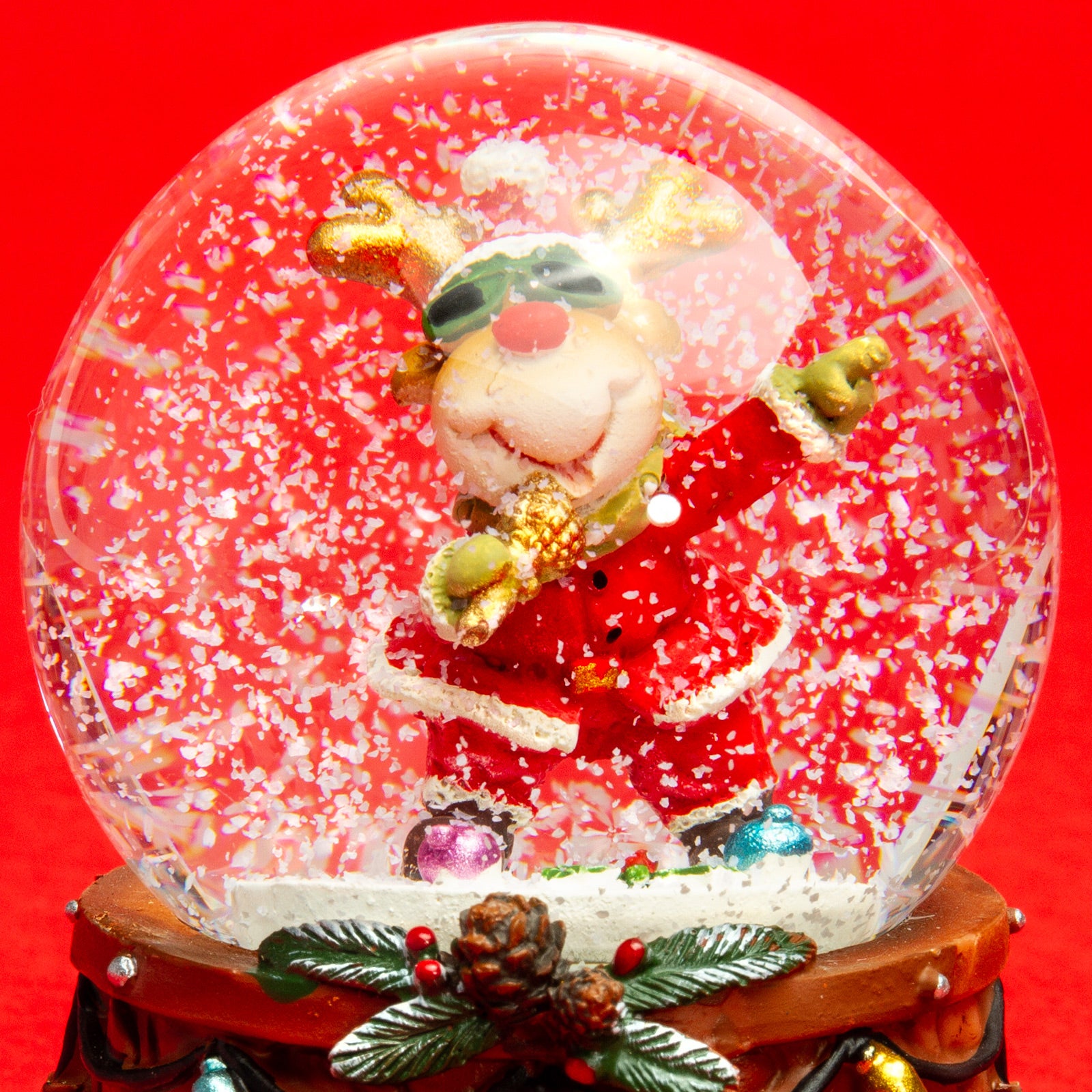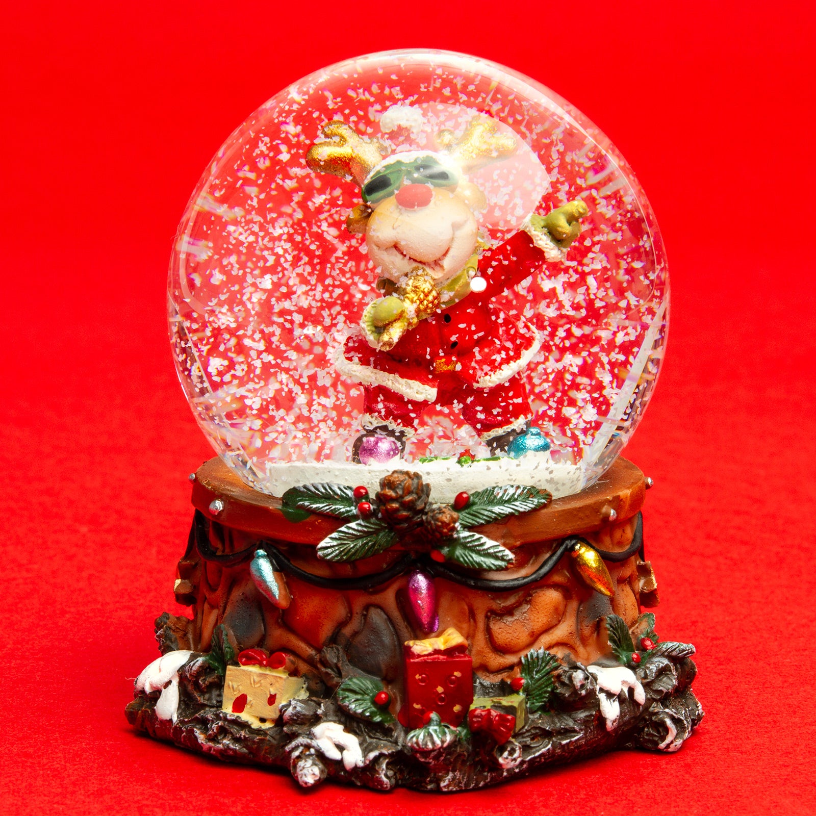 Wunderschöne Schneekugel in mittlerer Größe mit einem Glasdurchmesser von ca. 65 mm. Mit dem lustige "Rockstar Elch" Motiv ist dieses kleine Kunstwerk perfekt für leuchtende Kinderaugen. In der Flüssigkeit der Glaskugel befinden sich kleine künstliche Schneeflocken, die beim und nach dem Schütteln der Kugel für eine ordentliches Schneegestöber sorgen. Der liebevoll von Hand bemalte und verzierte Sockel besteht aus Gießkeramik, einer Mischung aus Steinmehl und synthetischen, bindenden Anteilen. So können die zahlreichen Details und Formen bestens gestaltet werden. Ein kleines Kunstwerk von SIKORA Weihnachtswelt.