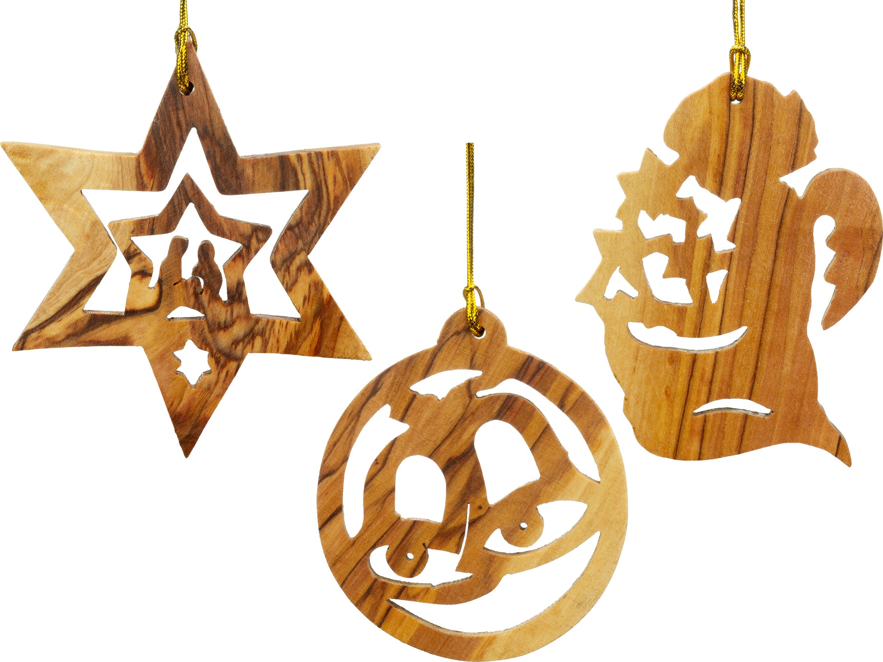 Hochwertiger Holz-Baumschmuck aus echtem Olivenholz. Hergestellt zu 100% in Handarbeit in einer kleinen Olivenholz-Manufaktur in Bethlehem erhalten Sie hier kleine Kunstwerke aus dem "Heiligen Land". Die farblich durchzogene Struktur des Olivenholzes erzeugt eine ganz besondere Oberfläche, die bei jedem einzelnen Anhänger unterschiedlich ausfällt. Die Anhänger sind auch sehr gut geeignet als hochwertige, niveauvolle Geschenkanhänger. SIKORA Weihnachtswelt.