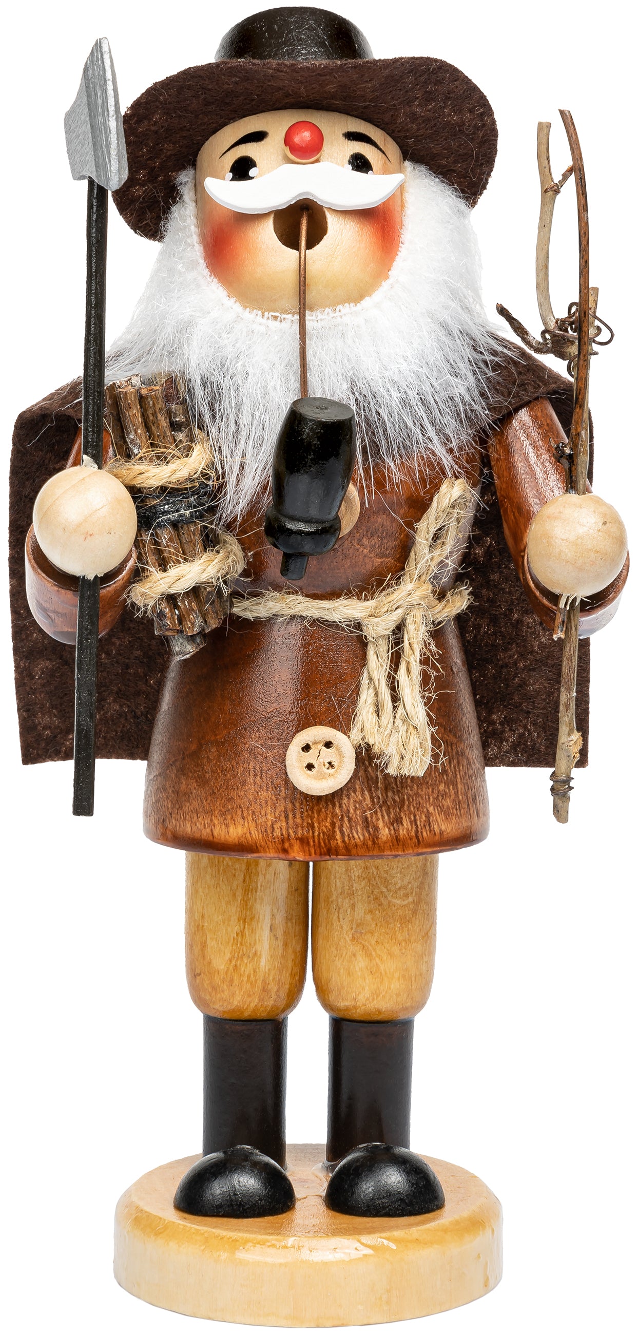 Unsere charmanten Räuchermännchen vereinen traditionelle Handwerkskunst mit liebevoller Gestaltung und einer großen Portion Persönlichkeit. Ob als Pilzsammler, Nachtwächter, Kräutersammler oder Holzfäller - jede Figur erzählt ihre eigene kleine Geschichte. Mit einer Höhe von ca. 19 cm und einem Gewicht von rund 125 g sind die Figuren kompakt und dennoch detailreich gearbeitet.