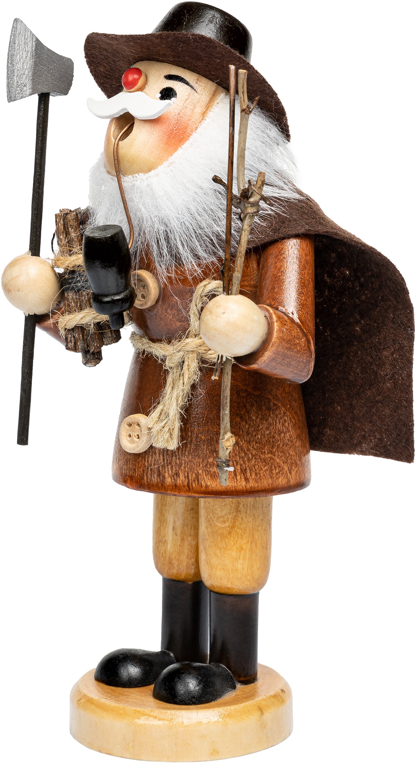 Sorgfältig gedrechselte Holzelemente werden in aufwendiger Handarbeit zusammengefügt, bemalt und mit passenden Accessoires versehen - vom Sammelkörbchen über die Laterne bis hin zur typischen Räucherpfeife. Das naturbelassene Holz ist gut abgelagert und sauber verarbeitet, sodass die Figuren über viele Jahre hinweg Freude bereiten.