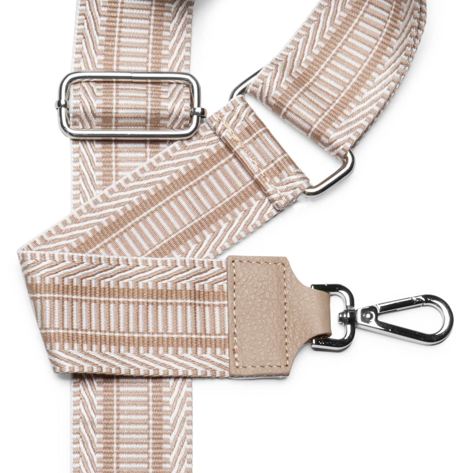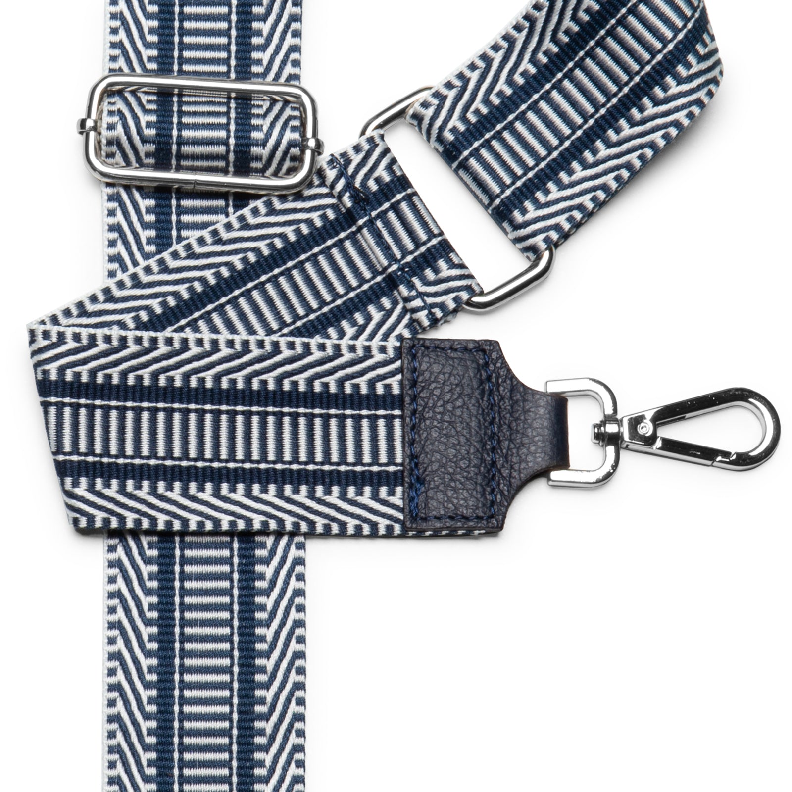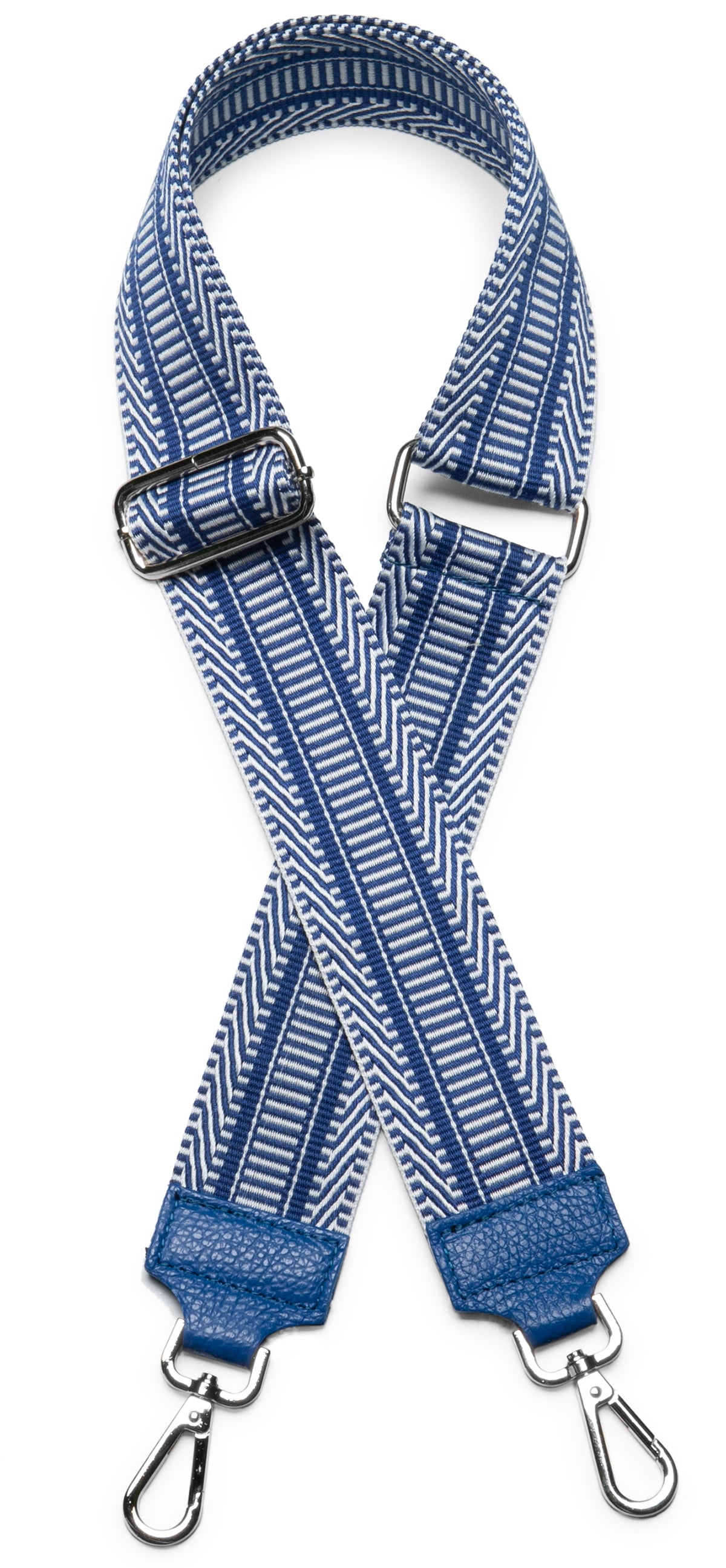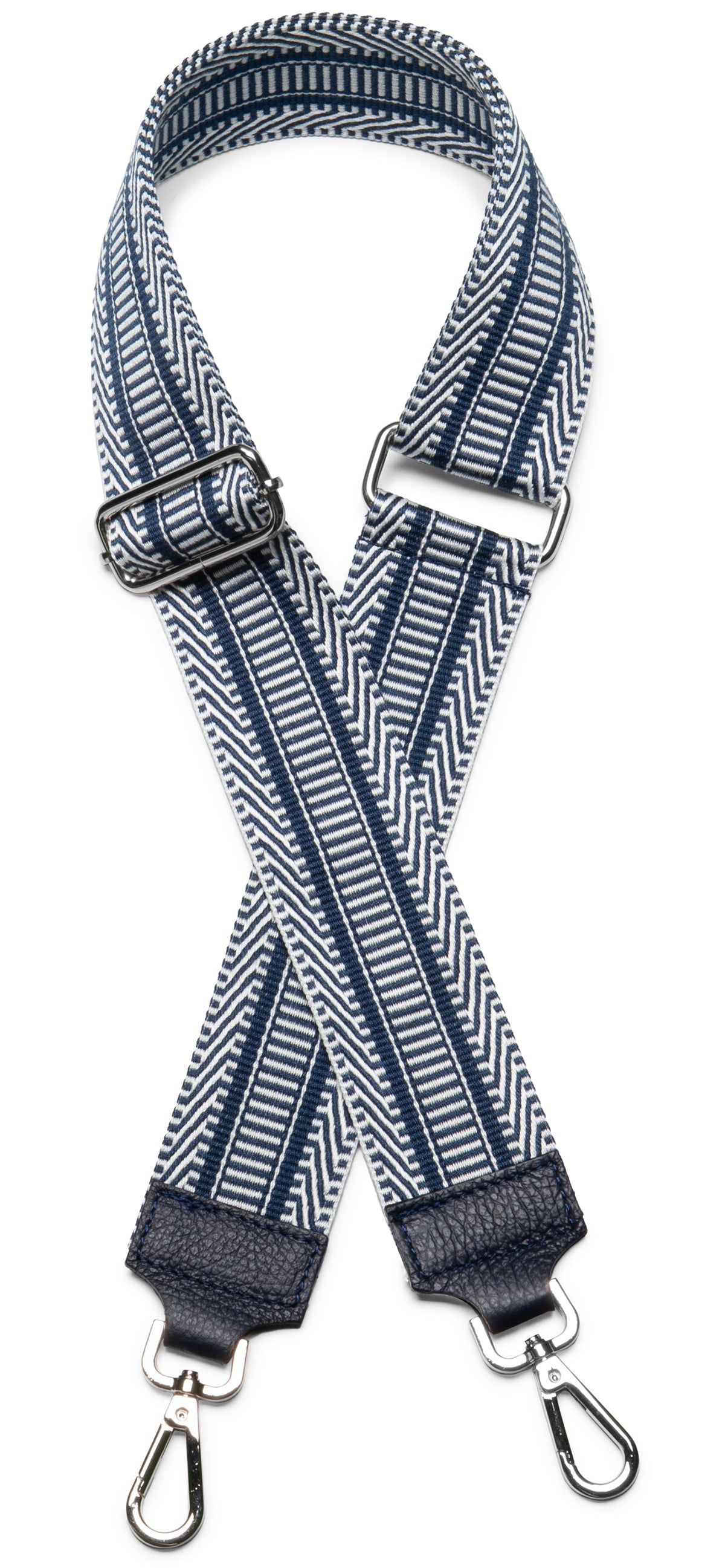 Hochwertiger, breiter Zusatz Tragegurt für Handtaschen aus reißfestem Textilgewebe und echtem Leder. Der 5 cm breite Umhängegurt hat eine flexibel einstellbare Gesamtlänge von 85 bis 128 cm und ist somit optimal geeignet als einfacher Schultergurt und/oder zum Tragen der Tasche als Cross Body Bag quer über der Schulter. Dank der Breite des Gurtes und dem griffigen Textilband hält der Gurt Deine Tasche perfekt auf der Schulter und verhindert lästiges Abrutschen. Und an sofort kannst Du Deine Lieblingstasche jetzt auch bequem quer über der Schulter tragen! Und mit dem schlichten aber dennoch auffallende Streifenmuster des Gurtes bekommst Du ein neues, dezent modisches Accessoire für Dein stilvolles Outfit. Material: Textilgewebe / Leder. Farbe der Metallteile: silber. Caspar - Made in Italy.