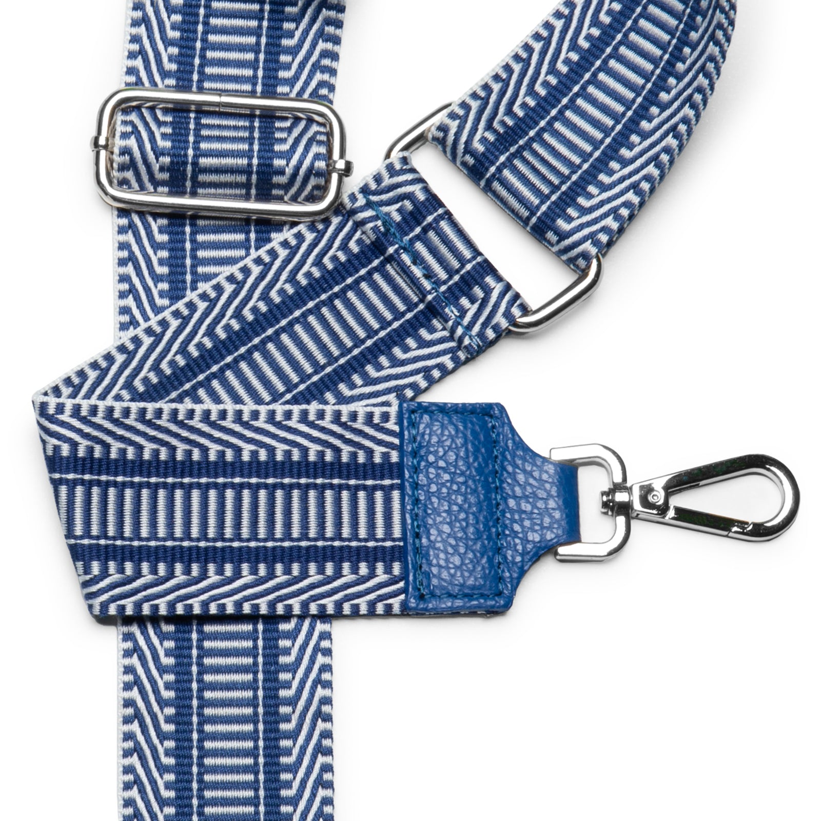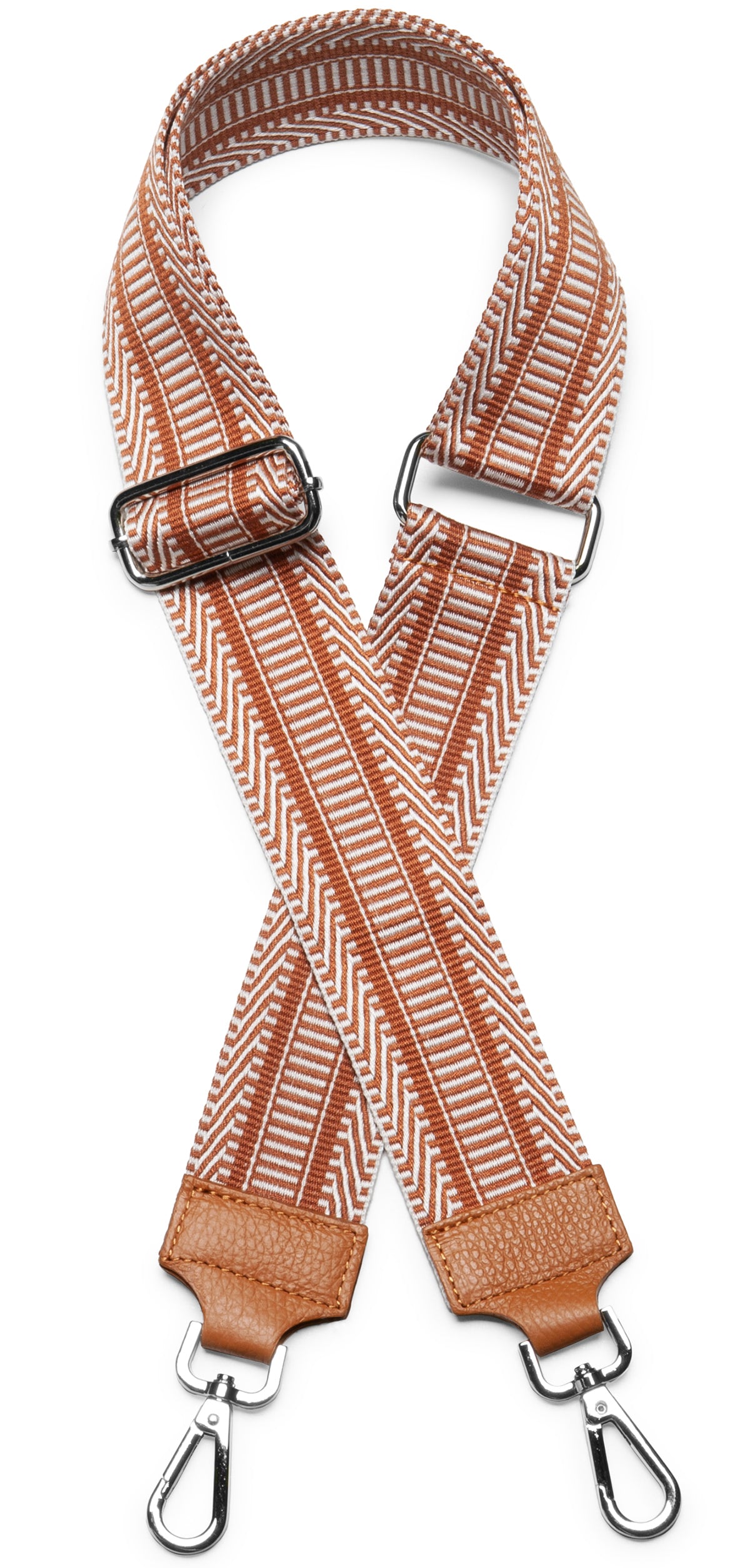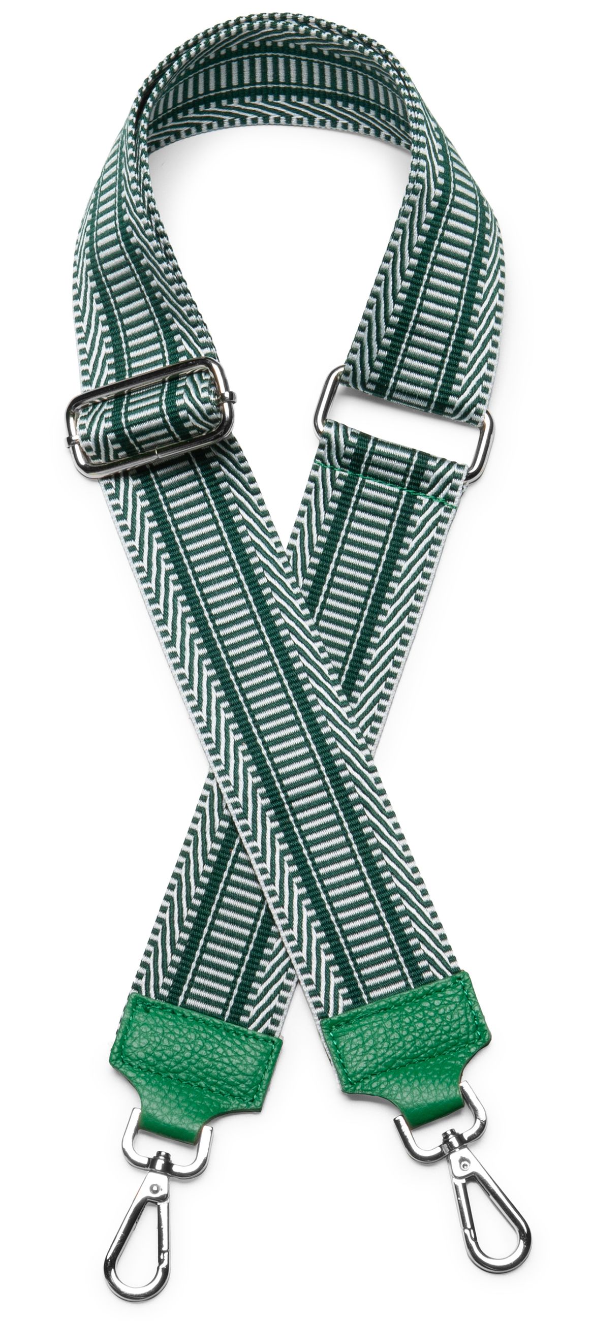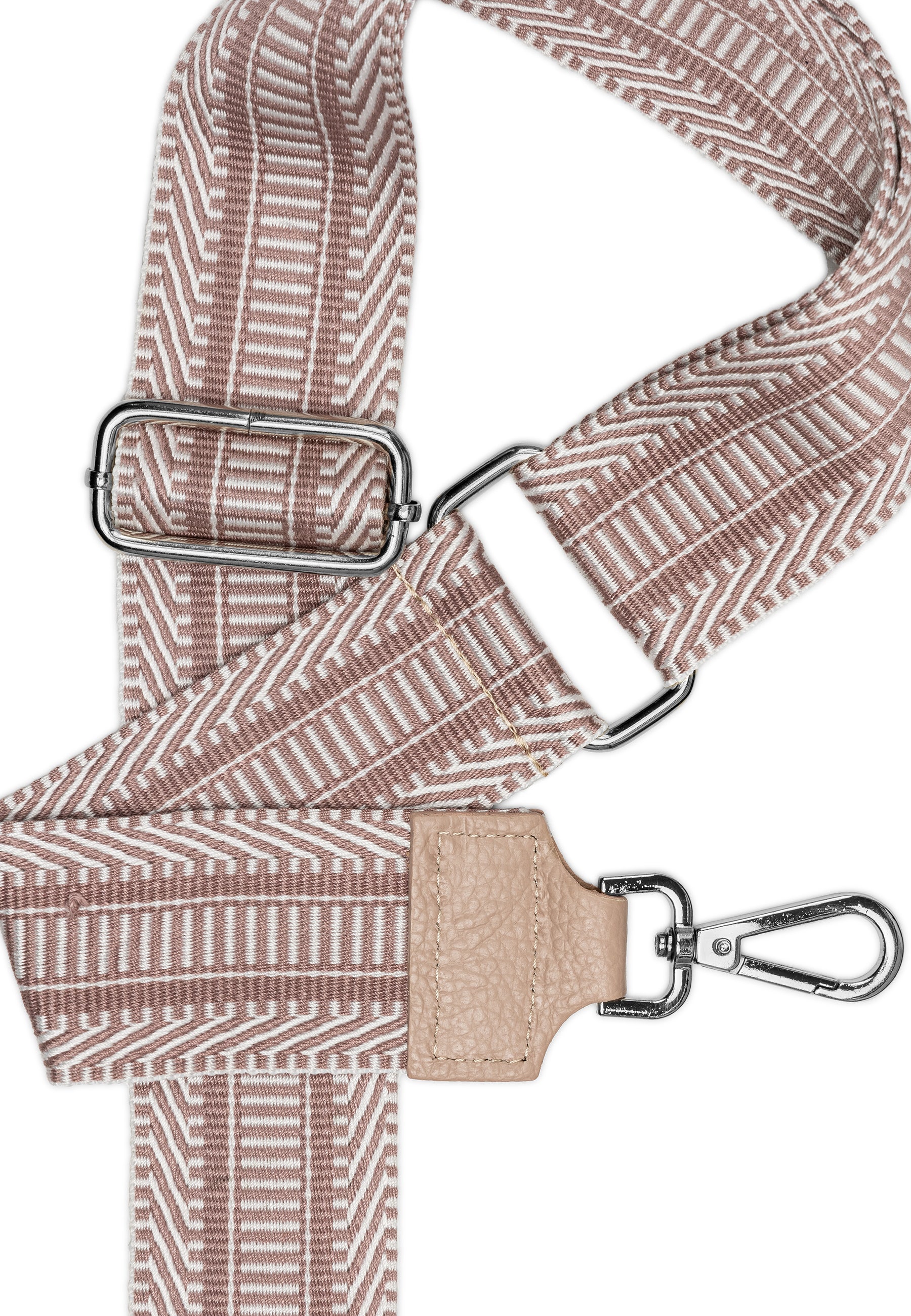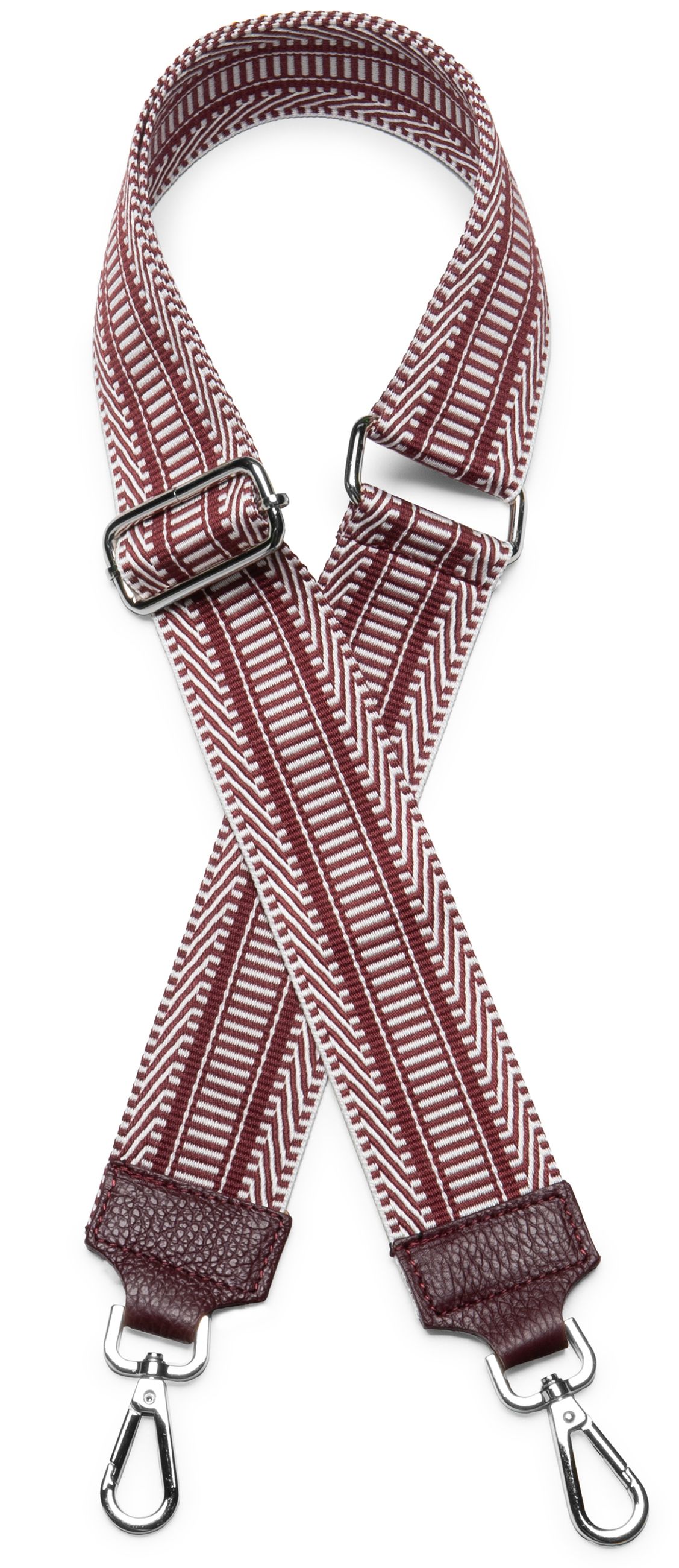 Hochwertiger, breiter Zusatz Tragegurt für Handtaschen aus reißfestem Textilgewebe und echtem Leder. Der 5 cm breite Umhängegurt hat eine flexibel einstellbare Gesamtlänge von 85 bis 128 cm und ist somit optimal geeignet als einfacher Schultergurt und/oder zum Tragen der Tasche als Cross Body Bag quer über der Schulter. Dank der Breite des Gurtes und dem griffigen Textilband hält der Gurt Deine Tasche perfekt auf der Schulter und verhindert lästiges Abrutschen. Und an sofort kannst Du Deine Lieblingstasche jetzt auch bequem quer über der Schulter tragen! Und mit dem schlichten aber dennoch auffallende Streifenmuster des Gurtes bekommst Du ein neues, dezent modisches Accessoire für Dein stilvolles Outfit. Material: Textilgewebe / Leder. Farbe der Metallteile: silber. Caspar - Made in Italy.
