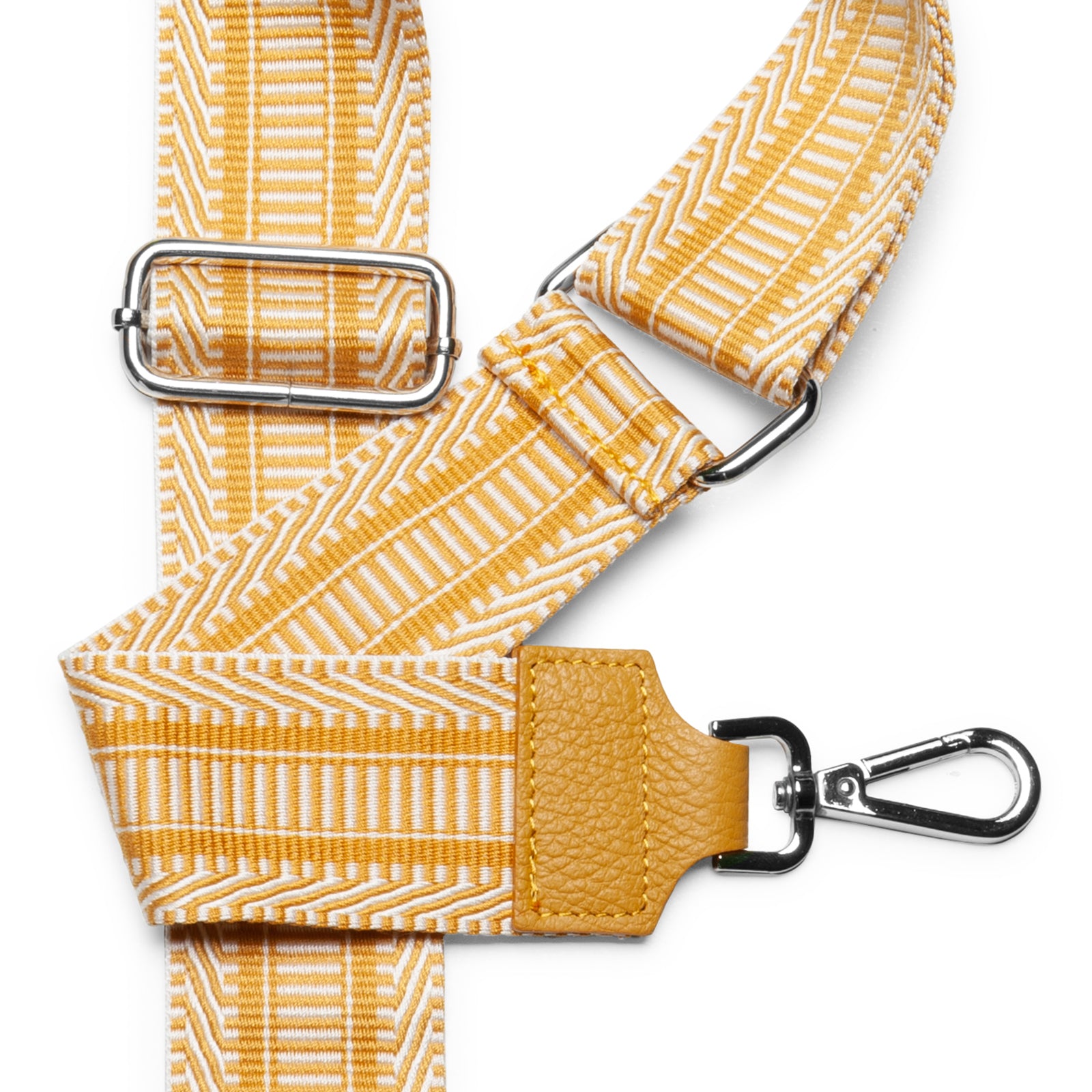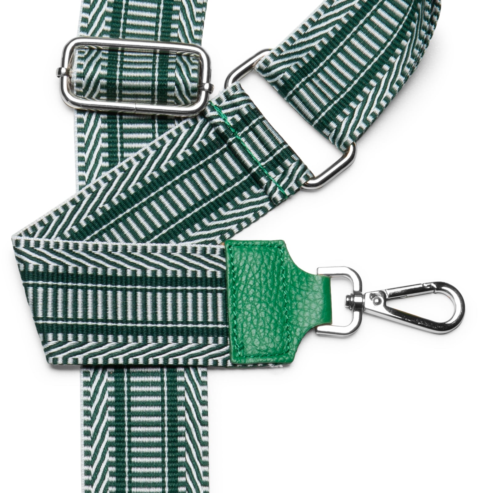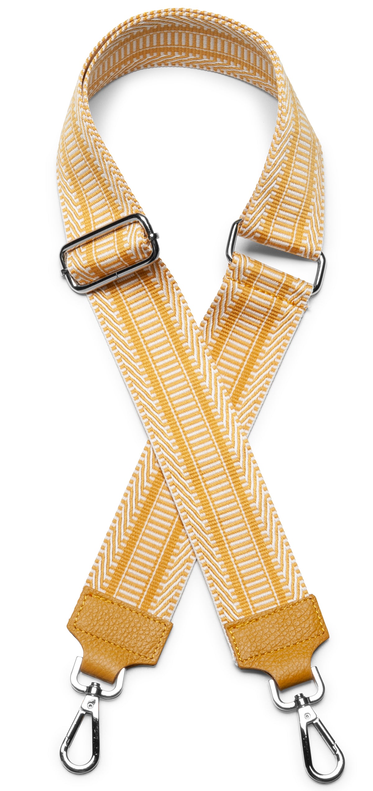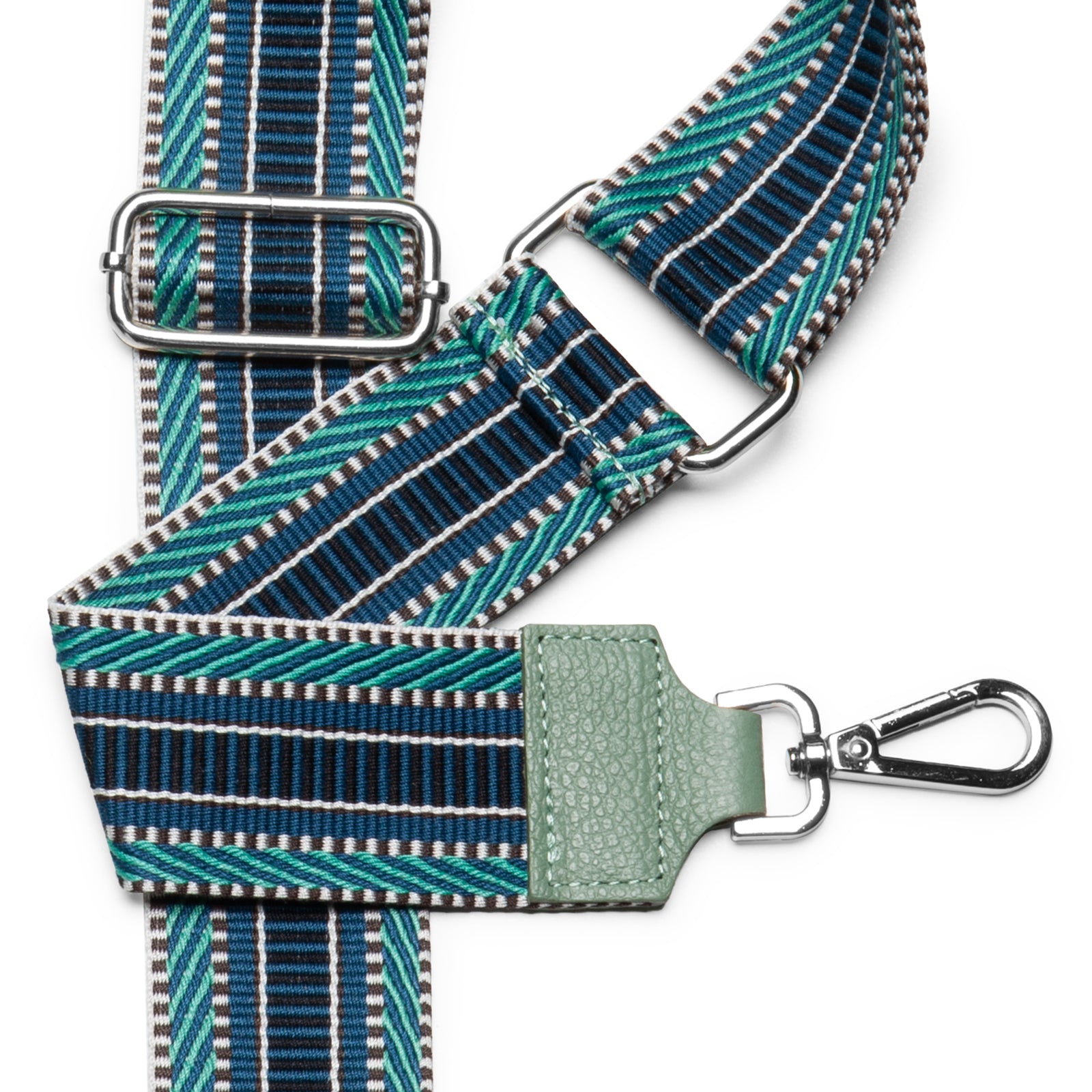Hochwertiger, breiter Zusatz Tragegurt für Handtaschen aus reißfestem Textilgewebe und echtem Leder. Der 5 cm breite Umhängegurt hat eine flexibel einstellbare Gesamtlänge von 85 bis 128 cm und ist somit optimal geeignet als einfacher Schultergurt und/oder zum Tragen der Tasche als Cross Body Bag quer über der Schulter. Dank der Breite des Gurtes und dem griffigen Textilband hält der Gurt Deine Tasche perfekt auf der Schulter und verhindert lästiges Abrutschen. Und an sofort kannst Du Deine Lieblingstasche jetzt auch bequem quer über der Schulter tragen! Und mit dem schlichten aber dennoch auffallende Streifenmuster des Gurtes bekommst Du ein neues, dezent modisches Accessoire für Dein stilvolles Outfit. Material: Textilgewebe / Leder. Farbe der Metallteile: silber. Caspar - Made in Italy.