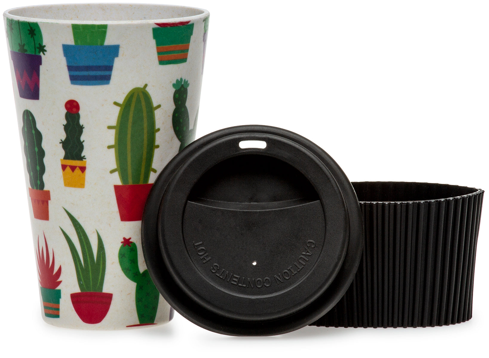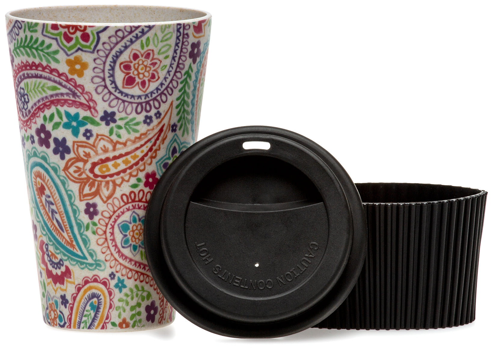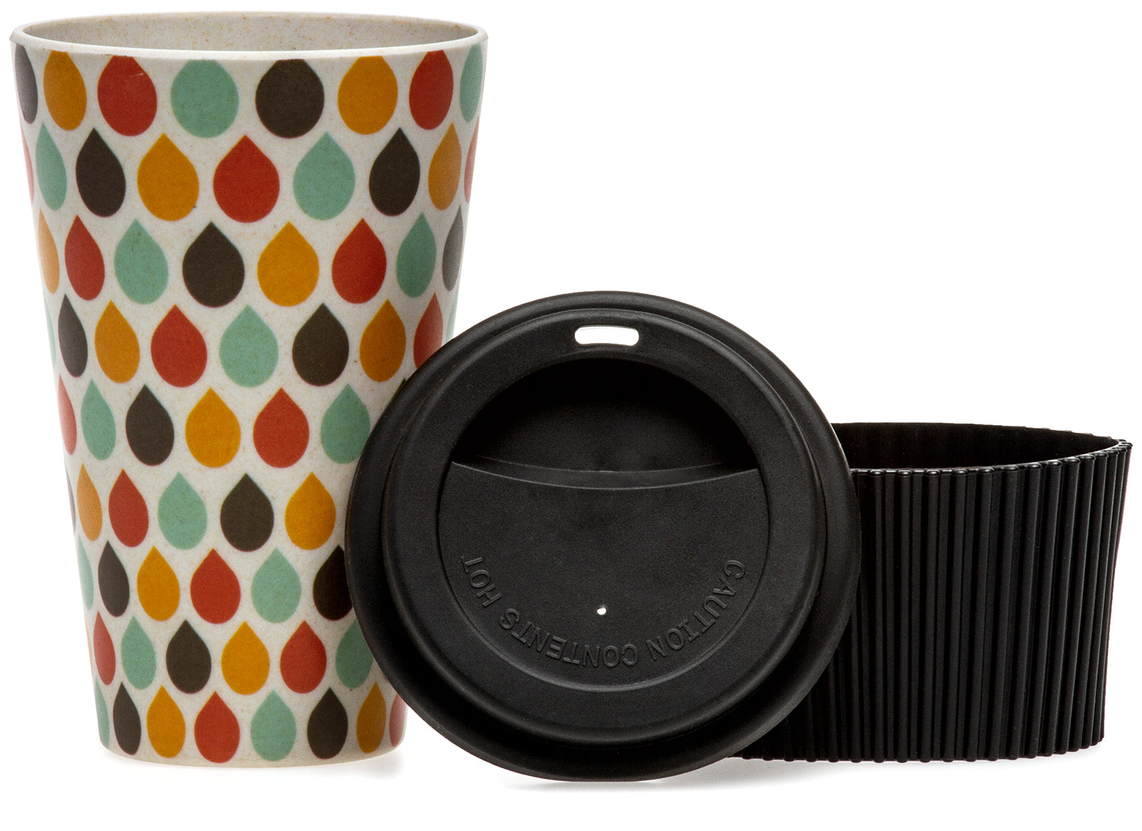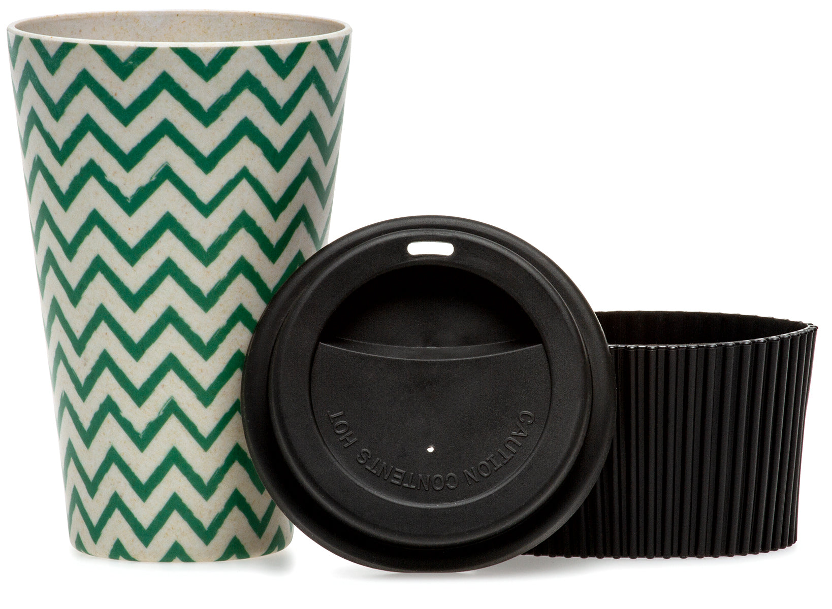 Umweltfreundlicher Coffe to Go Bambusbecher (Füllmenge: 400ml), ungefärbt, innen unbehandelt, außen bedruckt. Die Becher werden aus einer spülmaschinenfesten (bis 70°C) Materialmischung aus Bambusfaser (65%), Maismehl (15%) und lebensmittelechtem Melaminharz (20%) unter großer Hitzeeinwirkung geformt und ausgehärtet. Der Deckel und die Hitzeschutzmanschette bestehen aus geschmacksneutralem Silikon. Dabei stellta das Silikon einen vernünftigen Kompromiss aus Dichtigkeit (Funktion) und lebensmitteltechnischer Unbedenklichkeit dar. Silikon ist geschmacks- und geruchsneutral, leicht zu reinigen und gibt - anders als andere Kunststoffe - keinerlei Inhaltsstoffe an seine Umgebung ab Die Becher besitzen eine sehr natürliche, leicht rauhe Oberfläche und fassen sich sehr angenehm an. Sie sind geeignet zur täglichen, dauerhaften Verwendung in Haushalt, Büro, Camping, etc. Die Materialmischung des Bechers sowie das Silikon sind 100% BPA frei, geschmacks- und geruchsneutral und daher auch ideal geeignet für heißen Kaffee oder Tee, Wasser, Säfte, und Limonade... Ein weiterer Vorteile des Materials ist, dass es sich z.B. durch Kaffee oder Tee nicht verfärbt und dass sich - im Gegensatz zum Melamin oder Kunststoffgeschirr - kleine Kratzer selbst "heilen" und nach kurzer Zeit praktisch von selbst verschwinden. Die natürlichen Bestandteile sind vollständig biologisch abbaubar.